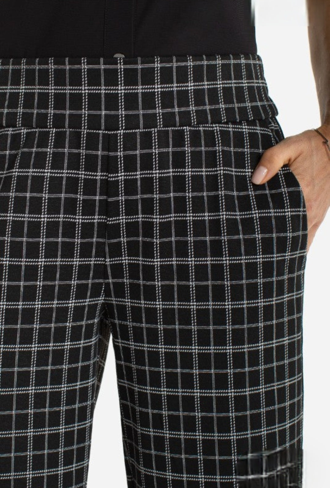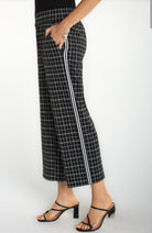 Sleek black and white print meets bold silhouette in this statement-making stovepipe bottom. Crisp white piping traces the side seam, adding an edgy contrast that elevates the monochrome palette. The fitted stovepipe cut commands attention—perfect for those ready to own their look with confidence and attitude. A daring essential that transforms any outfit into a power move.