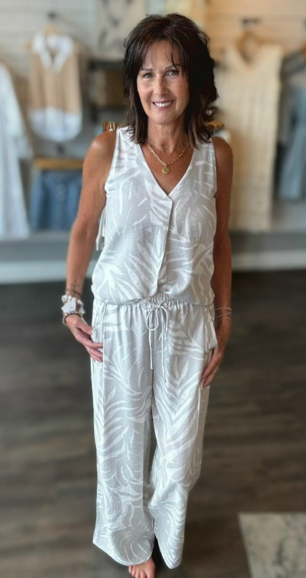 Unleash your inner fashionista with the Tessa soft grey printed bottom! This bottom features a soft grey print and an elastic waistband for the perfect fit. Perfect for a comfy yet stylish look, you'll never want to take these off!