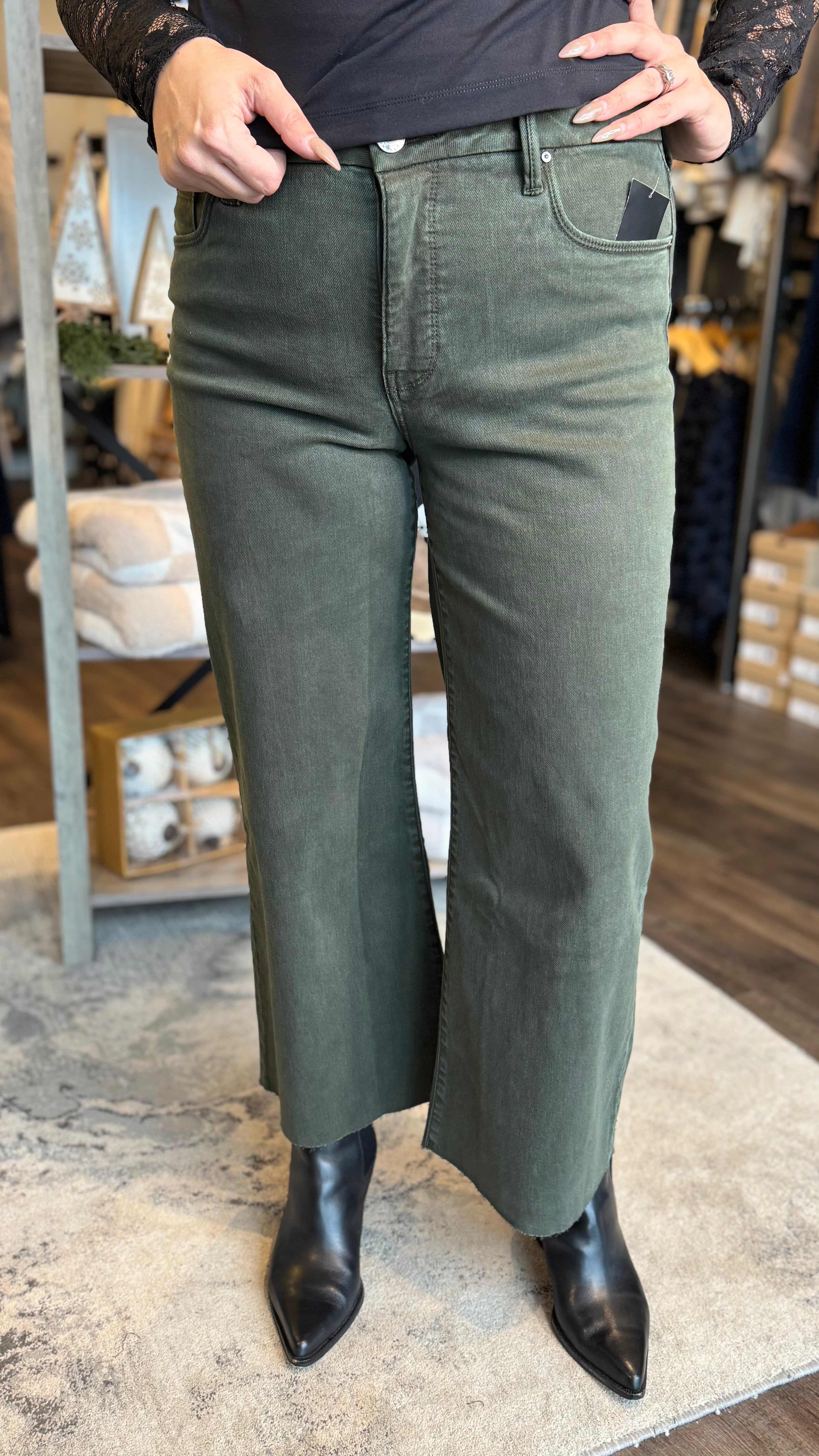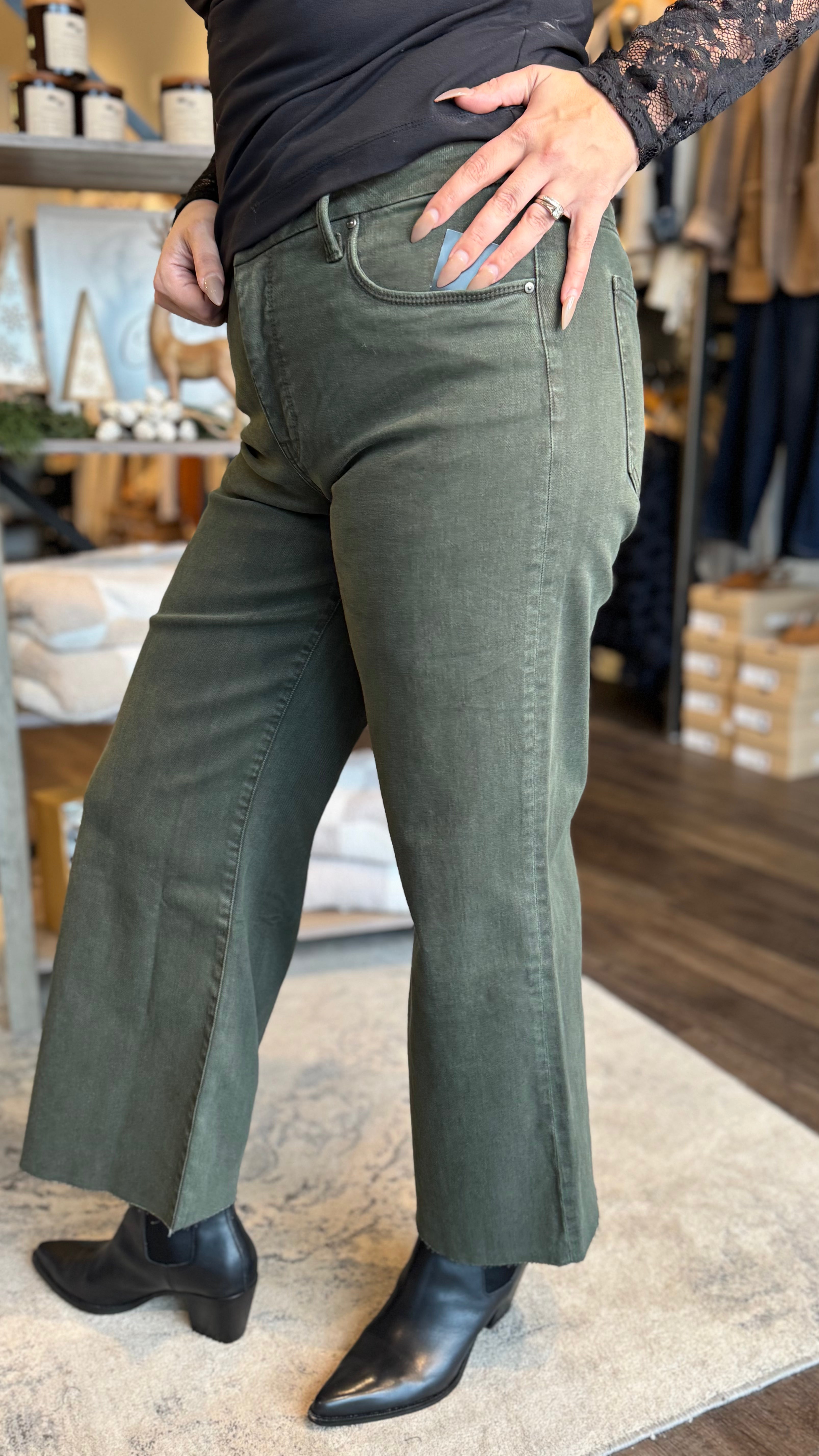 Meg High Rise Fab Ab Wide Leg Denim army green