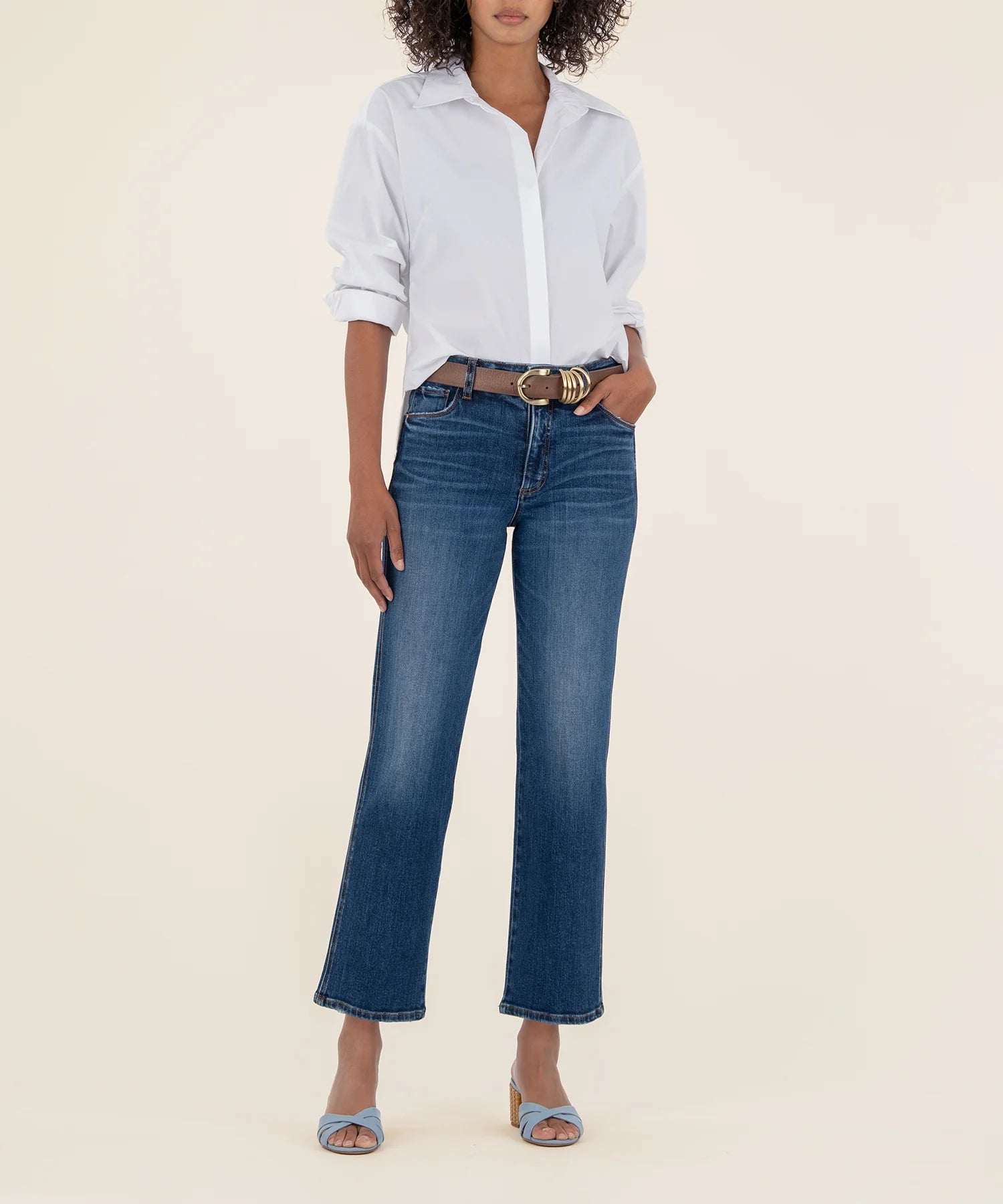 Step into comfort and style with the Pattie High Rise Straight Leg Denim. These jeans hug your waist just right and flow straight down for an effortlessly cool vibe. Perfect for everything from coffee runs to dance-offs, they combine classic denim durability with a playful, flattering fit you'll want to live in.