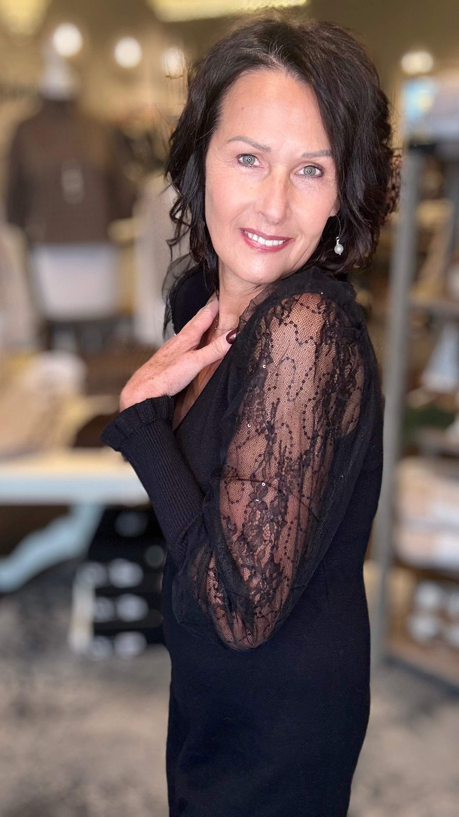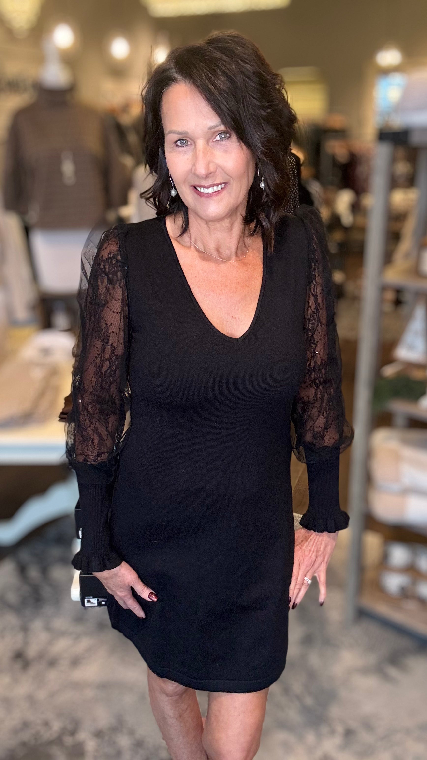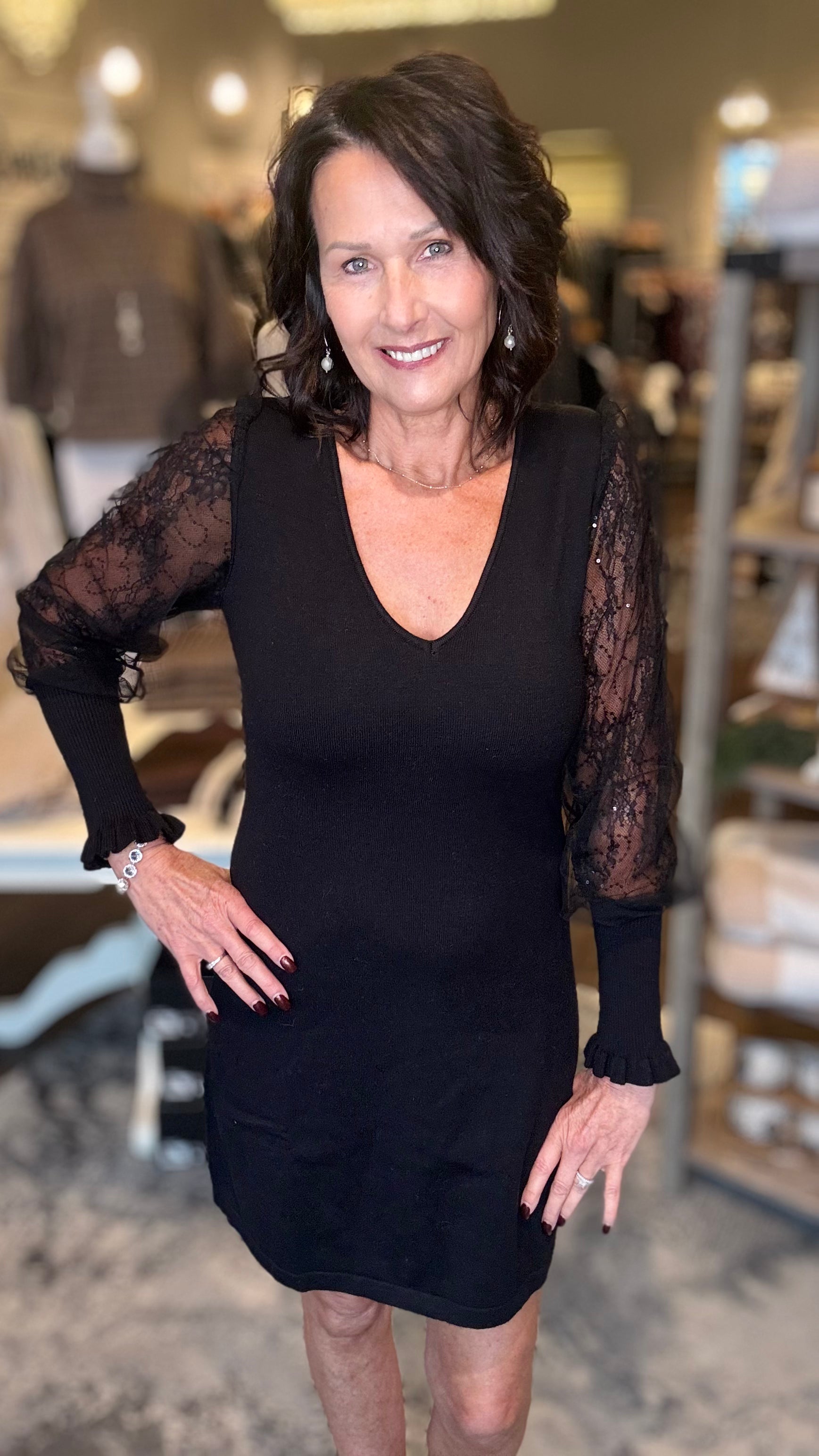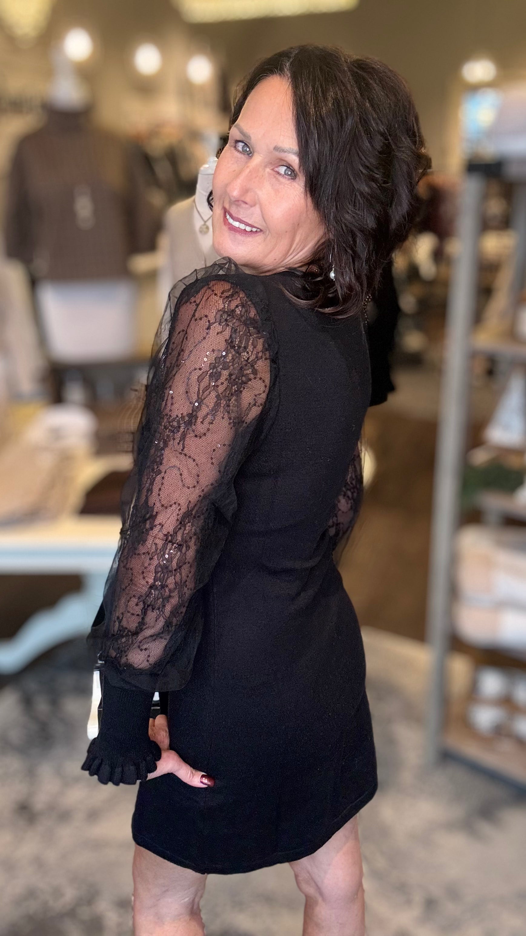 Black Woven Dress with sheer sleeves