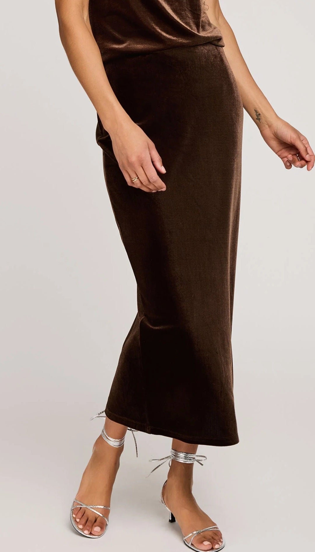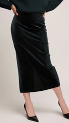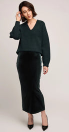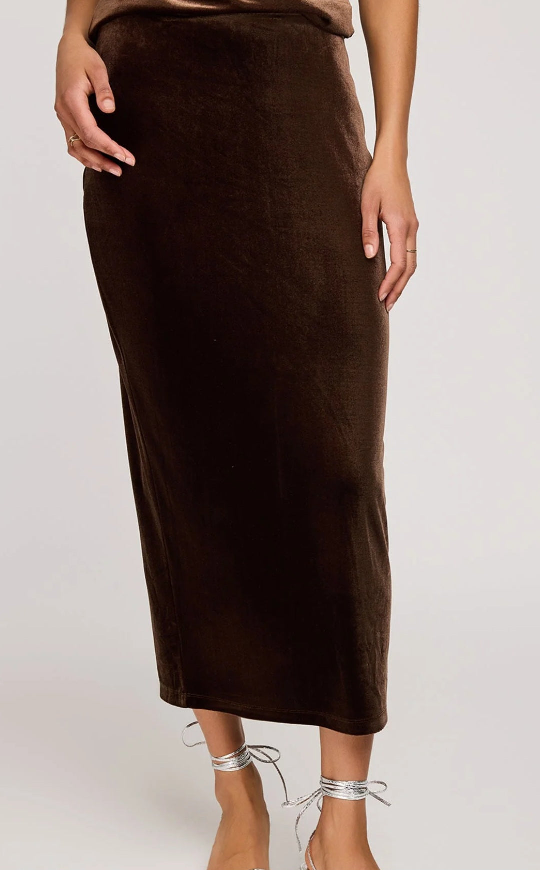 The Dahilia Velvet Skirt offers a luxurious feel and a chic silhouette, falling just below the knee for an elegant look. Crafted from soft velvet, it brings rich texture and subtle shine to your outfit, perfect for both formal events and stylish everyday wear. This skirt combines comfort with sophistication, making it a versatile addition to your wardrobe.