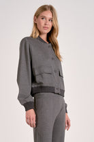 Elevate your wardrobe with this heather grey bomber jacket, designed for effortless style and comfort. Its versatile shade pairs easily with any outfit, while the classic bomber silhouette offers a flattering fit. Perfect for layering, this jacket shields against cool breezes without sacrificing breathability. Whether heading out for a casual day or a night out, experience reliable warmth and timeless appeal all in one.