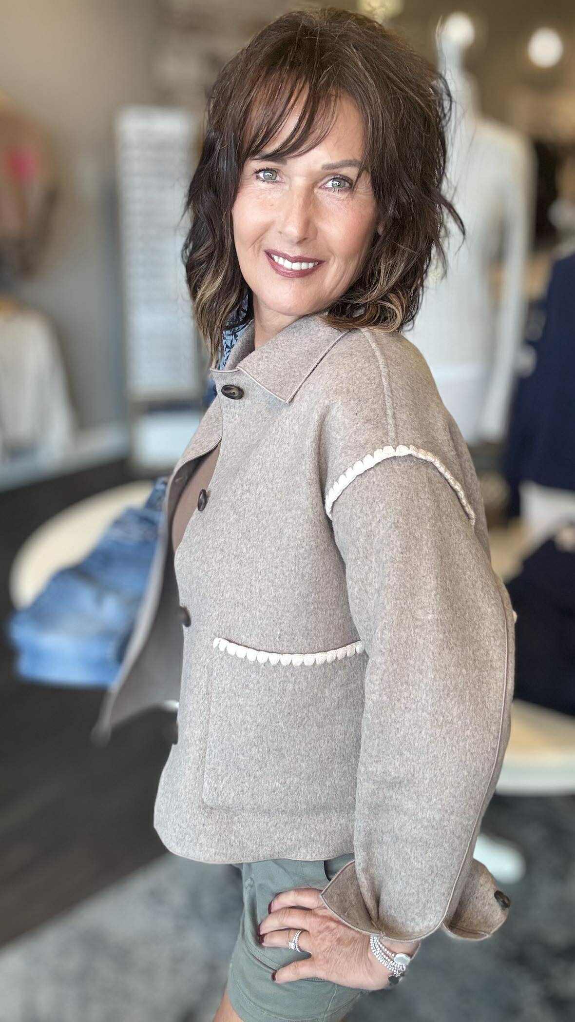 Double Face Wool Jacket w/ Blanket Stitch
