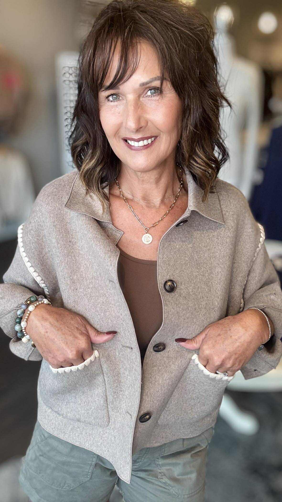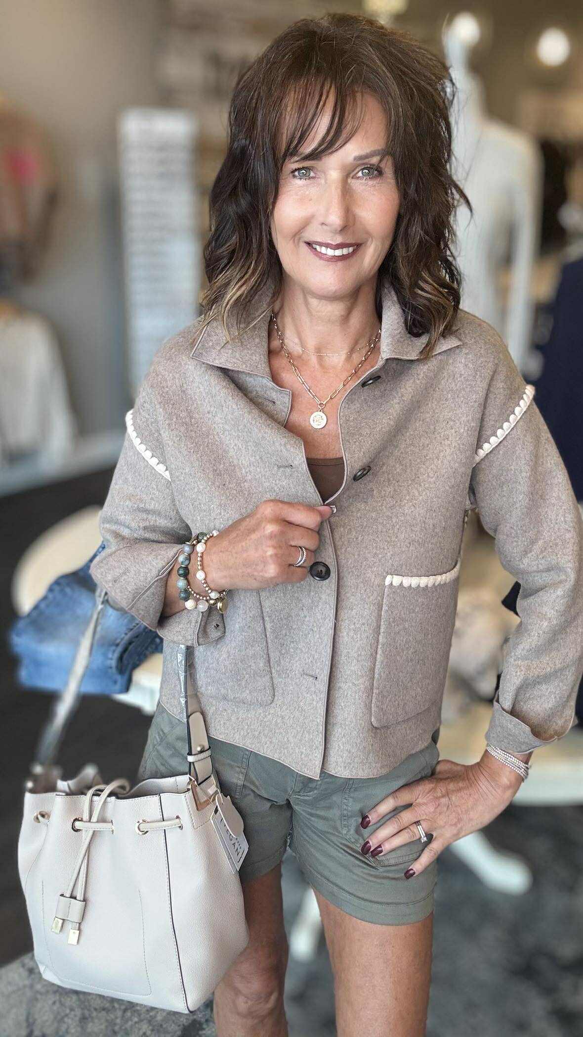 Embrace the crisp fall air with this Double Face Wool Jacket featuring elegant blanket stitch detailing. Crafted for warmth and style, its double-faced wool offers cozy insulation while maintaining a sleek silhouette. Perfect for layering, this jacket combines timeless craftsmanship with modern comfort, making it your go-to piece for cooler days. Elevate your autumn wardrobe with a jacket that promises both durability and refined charm.