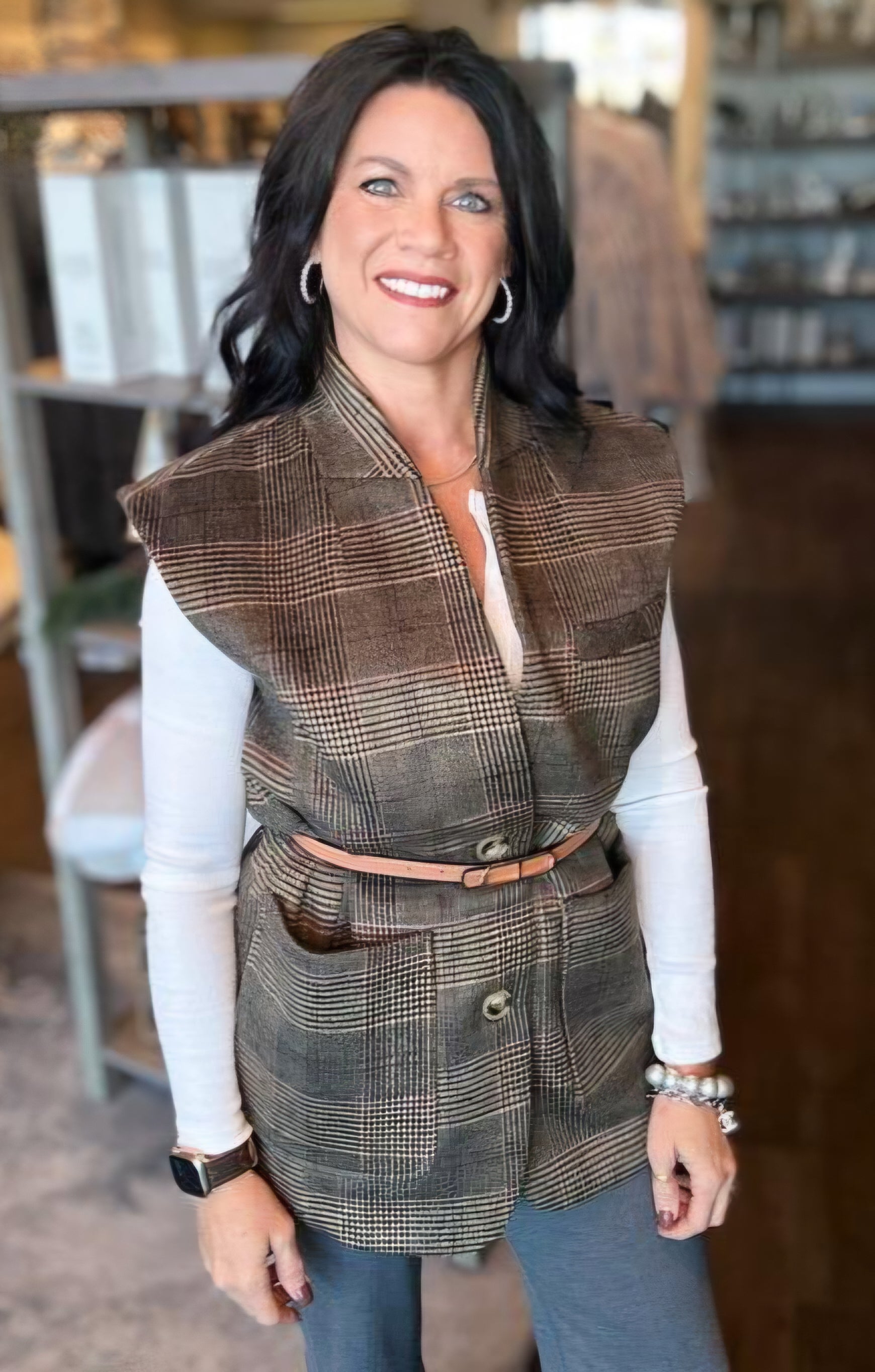 Elevate your wardrobe with this multi-colored cap sleeve vest featuring a sophisticated stand collar and an elongated silhouette that flatters every figure. Designed with practical side pockets for convenience and a stylish belt to cinch your waist, this vest effortlessly combines fashion and function. Perfect for layering, it adds a unique pop of color and polish to any outfit, making it a versatile must-have for your collection.