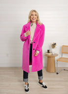 Embrace refined elegance with the MB Fuzzy Notch Collar Coat in Pink Flambe. Crafted for a flattering silhouette, this coat features a soft, textured fabric and a classic notch collar that adds a timeless touch. Perfect for cooler days, it provides warmth without sacrificing style, making it an essential addition to any sophisticated wardrobe.