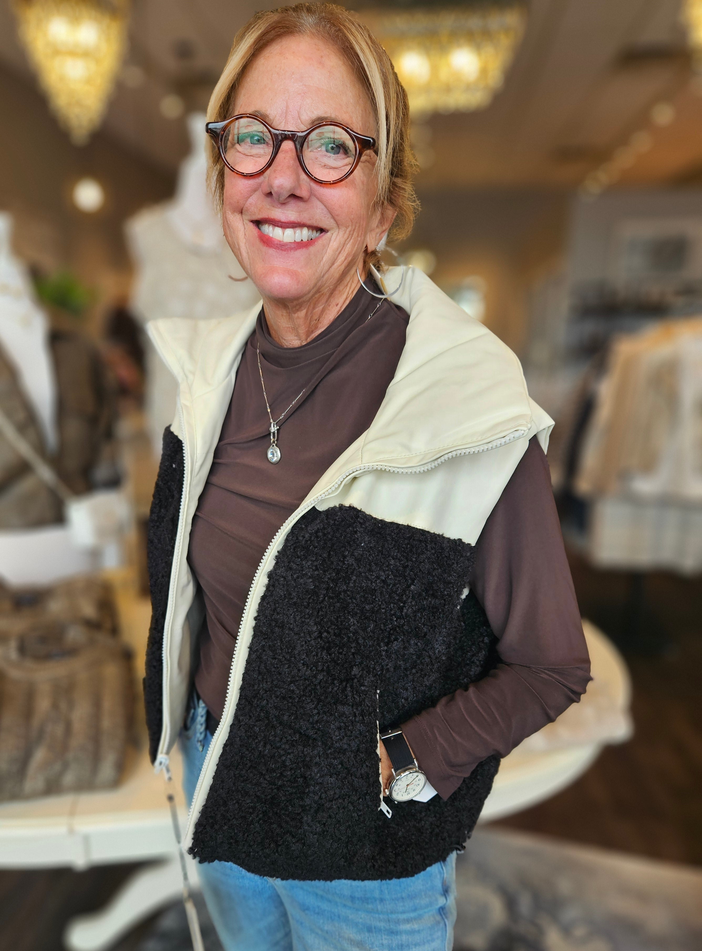 Switch up your style in a snap with this reversible white and black vest! Whether you’re feeling classic black or crisp white, this versatile piece lets you mix and match effortlessly. Perfect for layering, it adds a fun twist to any outfit while keeping things cozy and cool. Flip it, wear it, love it!