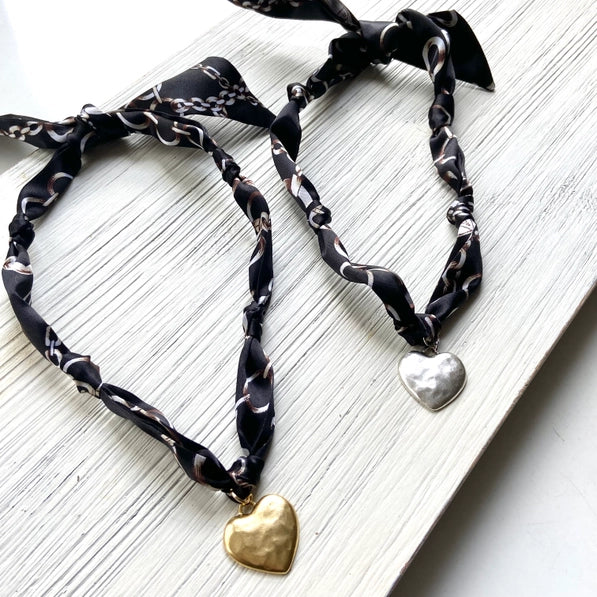 Elevate your style with the Scarf Necklace, a refined accessory that blends delicate fabric with a subtle heart detail. Its knotted design offers a distinctive silhouette, creating an elegant focal point that complements any outfit with effortless sophistication. Perfect for adding a touch of timeless charm to both casual and formal ensembles.