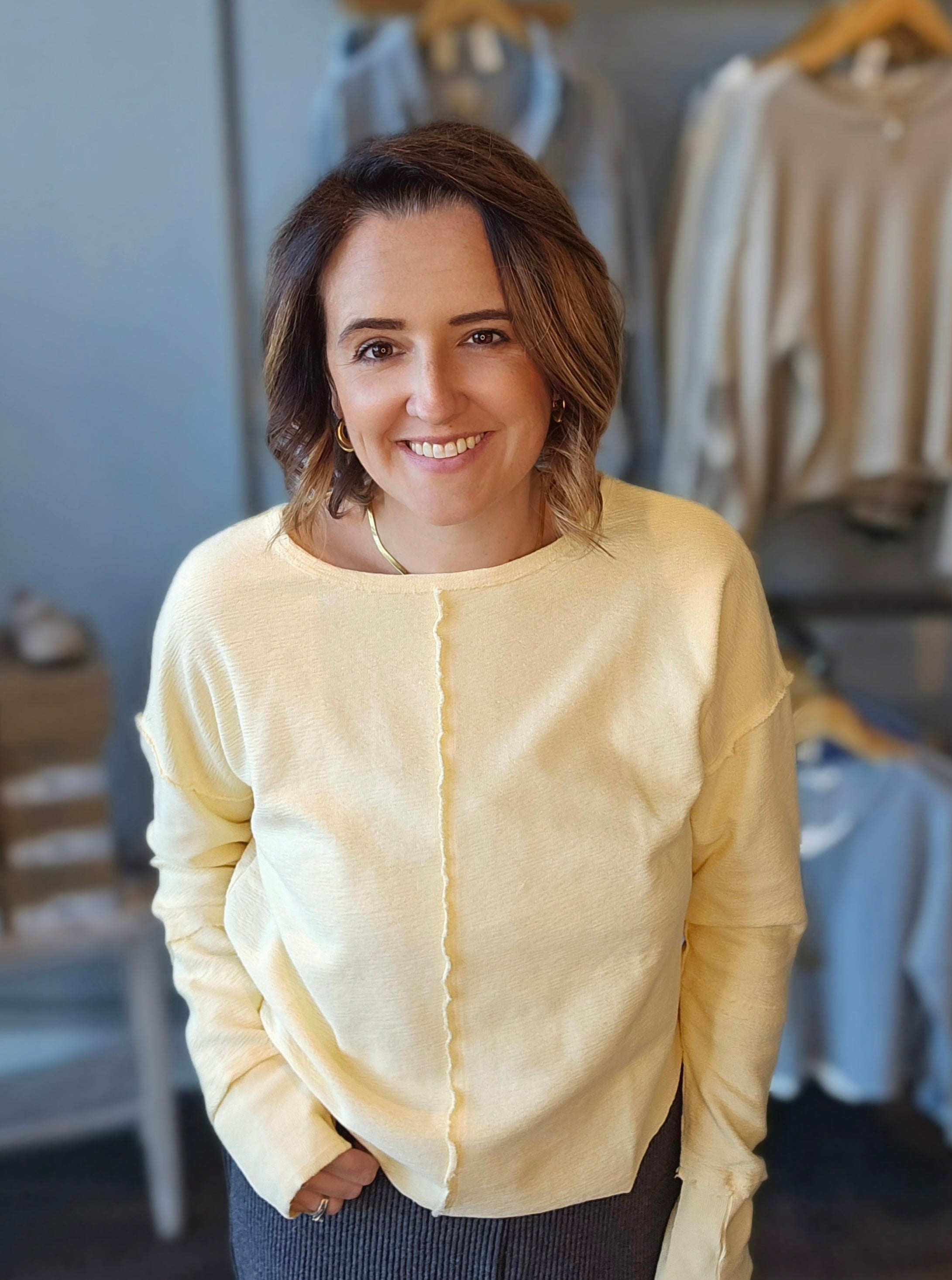 Wrap yourself in cozy comfort with the Annika Long Sleeve Sweatshirt by XCVI. This butter yellow beauty brings warmth and cheerful style to your everyday rotation. Perfect for layering or wearing solo, it's the kind of piece that makes you smile every time you pull it on. Effortless, comfortable, and undeniably charming—your new favorite sweatshirt awaits.