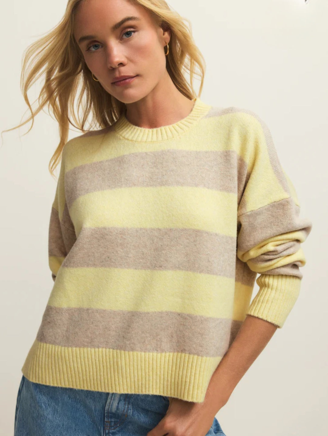 Elevate your everyday wardrobe with the Cirrus Stripe Sweater, a timeless piece that effortlessly transitions from casual to polished. Featuring a classic yellow and grey stripe pattern, this versatile sweater pairs beautifully with jeans, skirts, or tailored trousers. The balanced color combination ensures it works with nearly everything in your closet, making it a smart investment for year-round styling. Soft, comfortable, and undeniably chic—this is the sweater you'll reach for again and again.