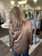 Elevate your wardrobe with the Dione Chestnut Blazer, tailored in smooth satin for a luxe finish. Its rich chestnut hue adds warmth and versatility, perfect for transitioning from office to evening. Designed to flatter with a structured fit, this blazer brings effortless sophistication to any outfit. Make a confident statement wherever you go with this timeless, polished piece.