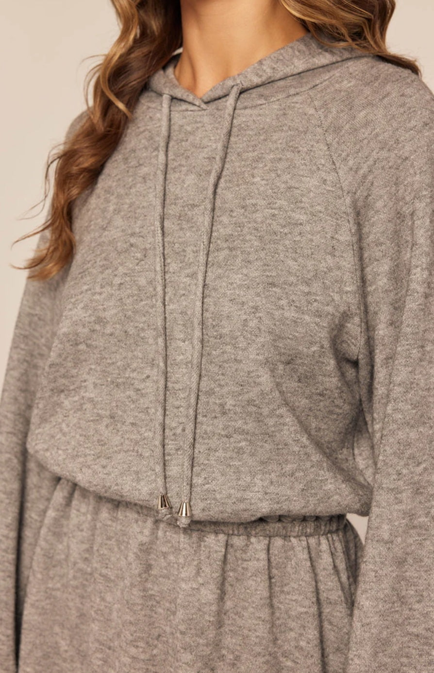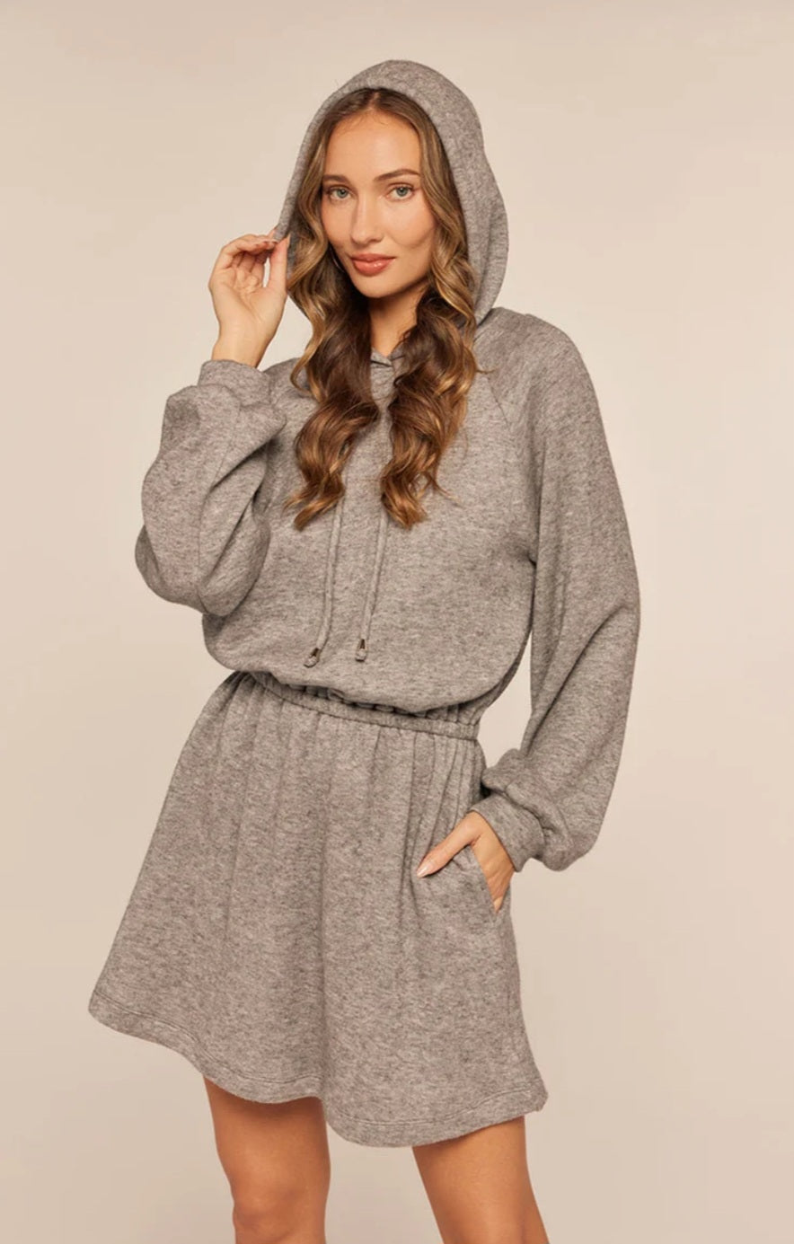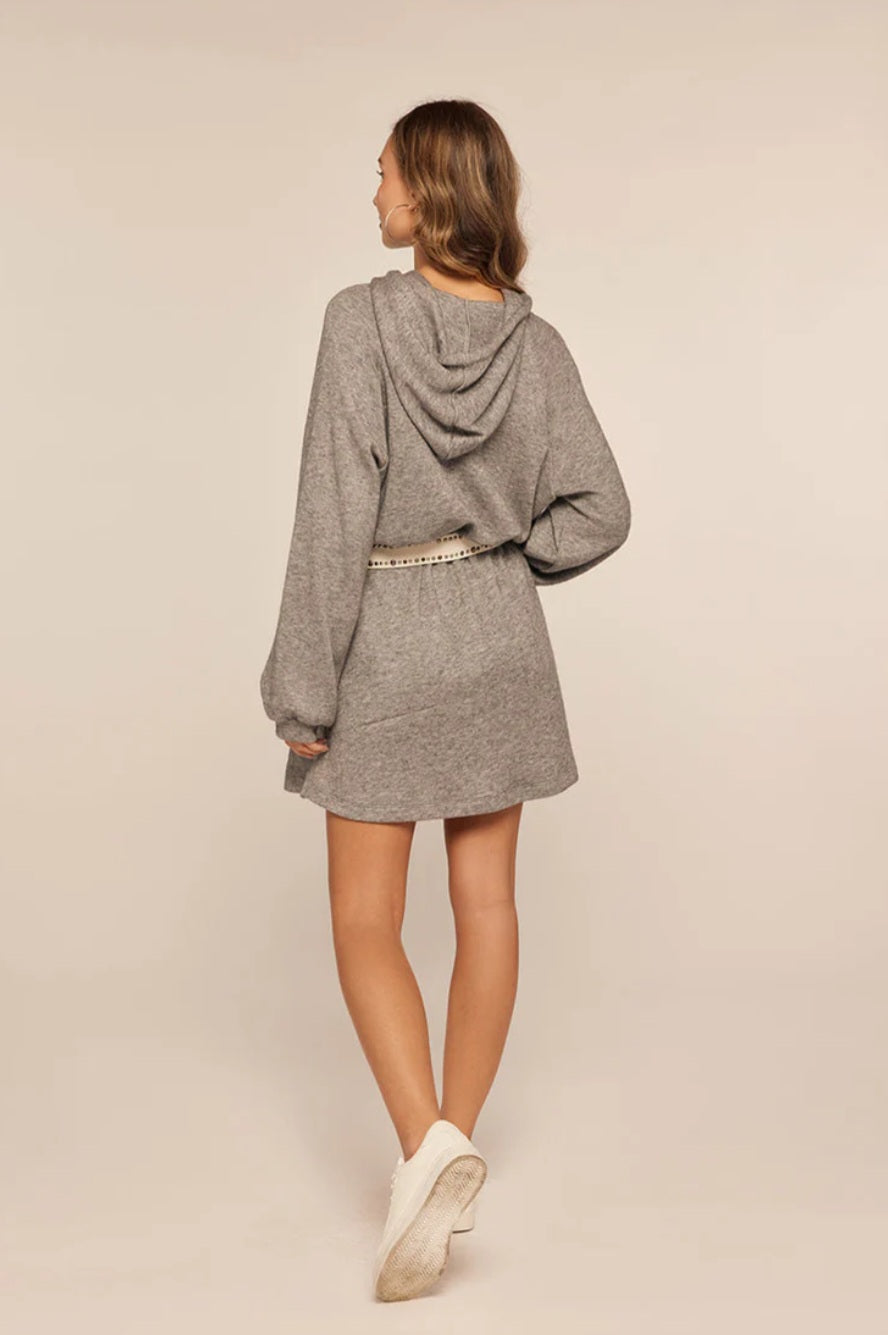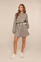 Effortless layering meets contemporary comfort in this knit Evelyn dress. Crafted from soft, breathable knit fabric, the design features a functional hood for added versatility and warmth. The above-the-knee silhouette strikes a modern balance between casual and polished, making it ideal for transitional dressing. The neutral grey tone pairs seamlessly with your existing wardrobe, while the relaxed fit ensures all-day wearability. Perfect for weekend outings or layered styling with your favorite accessories.
