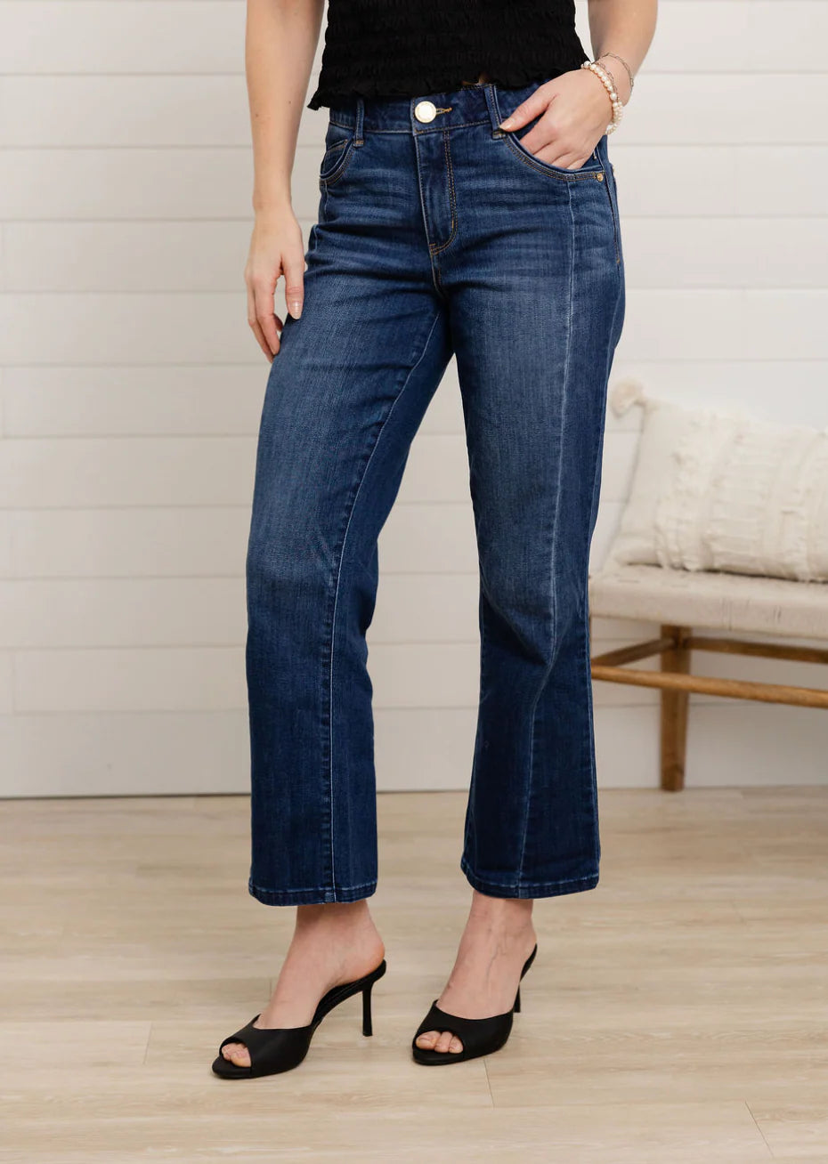 The Mac and Me Barely Boot w/ Front Seams is another standout from our exclusive Mac and Me line — designed with real bodies and real comfort in mind. This pair features a subtle bootcut that balances the leg beautifully, while front seams and a sleek side panel create a lengthening, leg-enhancing effect. Darts at the back add shape and polish, giving you that lifted, held-in feel everyone loves. Crafted from buttery soft denim, these jeans are as comfortable as they are confidence-boosting.