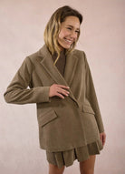 Elevate your wardrobe with this khaki woven blazer, designed to bring effortless style and versatility to any outfit. Its classic fit and neutral tone make it an essential piece for both professional settings and casual occasions. Crafted for comfort and polished appearance, this blazer helps you look confident and put-together with ease.