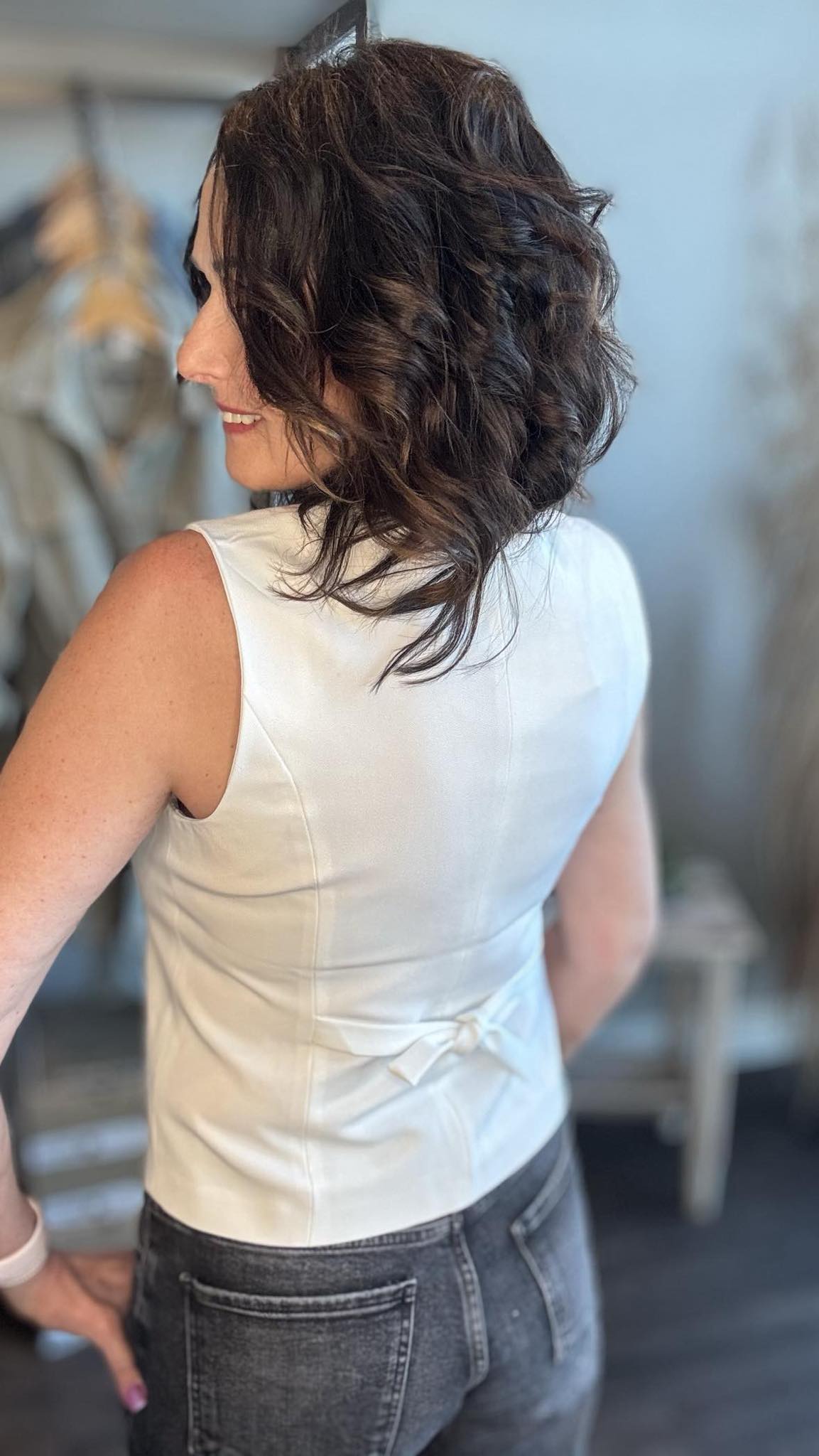 Introducing the Bydeceri Vest, the perfect addition to your wardrobe. With its creamy texture and dreamy design, this vest is both on-trend and versatile. Embrace the latest fashion while staying comfortable and stylish. Elevate your look with the Bydeceri Vest.