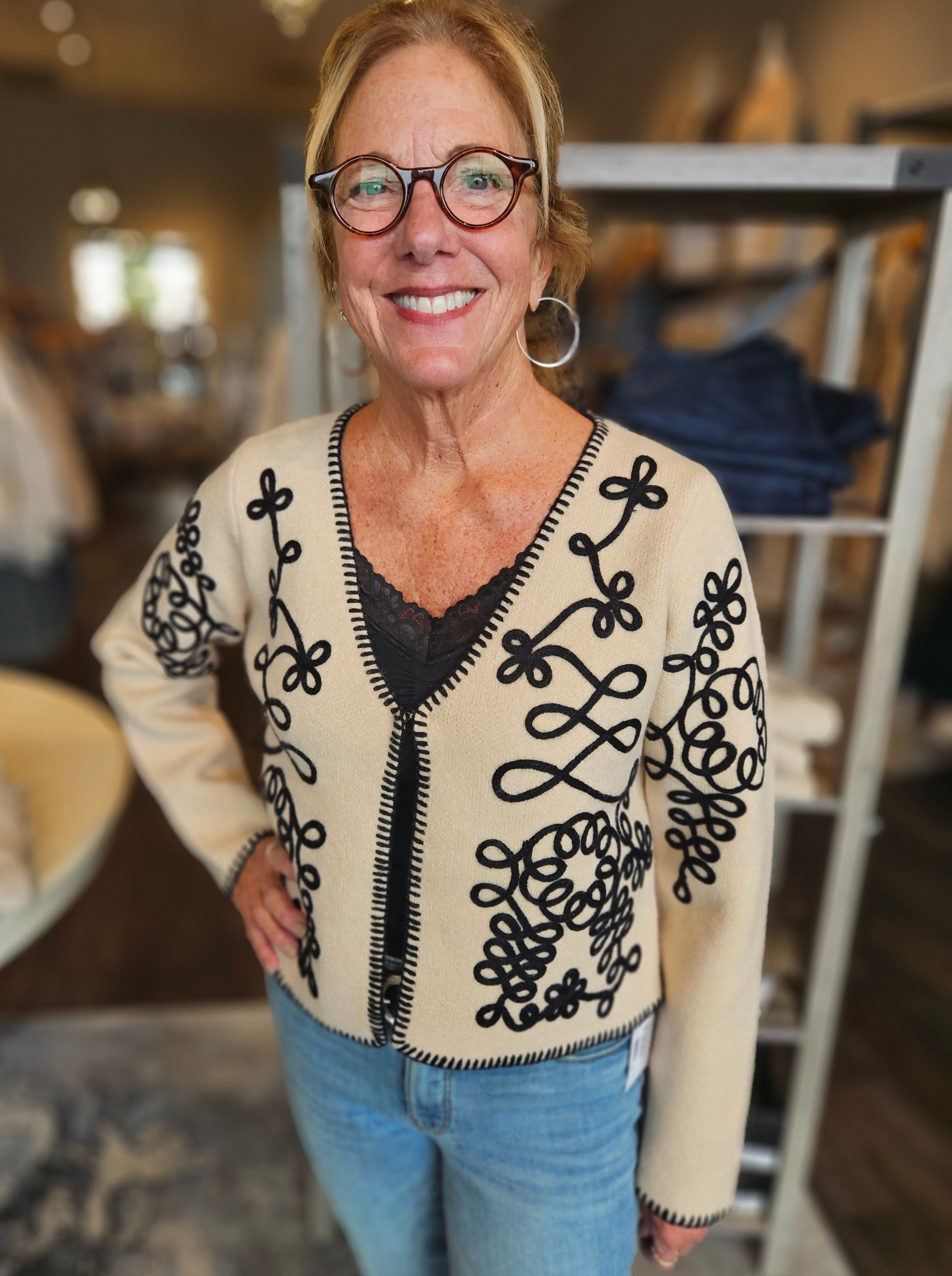 Elevate your wardrobe with the Cornelli Cardigan, designed to blend timeless elegance with modern comfort. Crafted from soft, premium fabric, it features a subtle swirl pattern that adds depth and refinement to your look. Perfect for layering, this cardigan effortlessly complements both casual and formal outfits, making it a versatile addition to any sophisticated collection.
