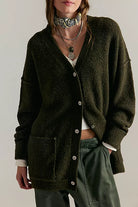 Elevate your cozy game with the Free People Blazing Cardi—a daring twist on a classic staple. This oversized cardi wraps you in softness with its relaxed silhouette and plush knit fabric. The bold V-neckline and button-front closure add edge, while two patch pockets bring practical style. Make a statement in comfort that demands attention.