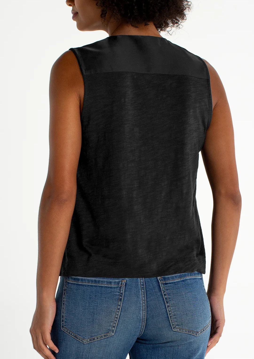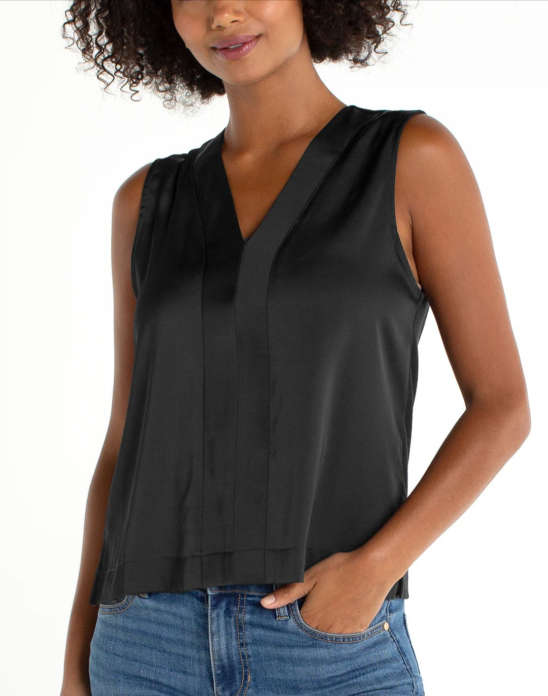 Black V-Neck Satin Front Top