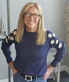 Raglan Crew Neck Sweater w/ Embroidered Sleeve Detail