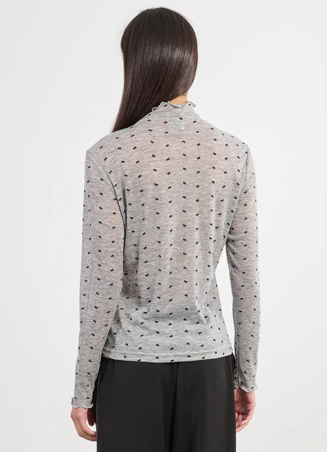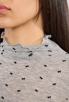 The Bow Knitted Top features a charming tiny bow print that adds a touch of delicate elegance to any outfit. Perfect as a great layering piece, its lightweight knit ensures comfort and versatility throughout the seasons. Whether worn alone or under jackets and cardigans, this top effortlessly enhances your wardrobe with feminine style and cozy appeal. Upgrade your look with this subtly patterned, easy-to-style essential.