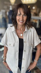 Meet your new favorite go-to: the Short Sleeve Knit Button-Up Sweater, available in three easygoing neutral colors. Its soft knit and playful button-up design make layering a breeze while adding a touch of charm to your everyday style. Cozy, cute, and effortlessly cool!