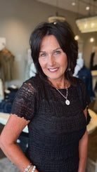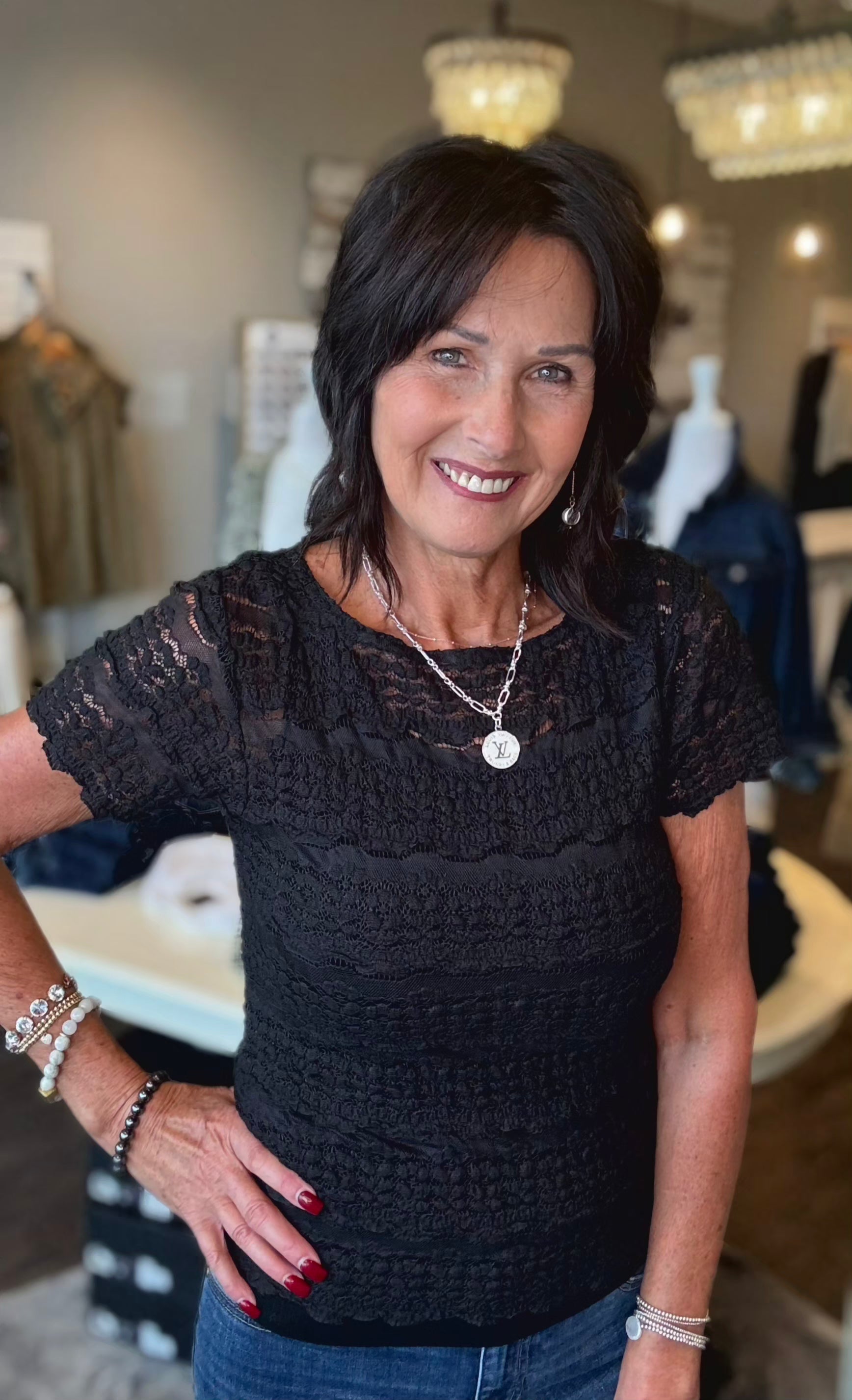 Elevate your wardrobe with the Angelina Lace Tee in Black, a bold statement piece that blends sultry lace detailing with effortless style. Its delicate pattern reveals just enough, making it perfect for layering or wearing on its own to command attention wherever you go. Dare to stand out with this daring classic that merges comfort and edgy sophistication.