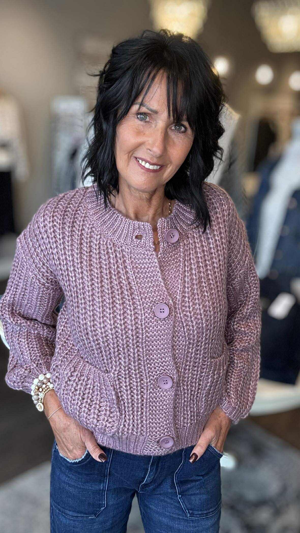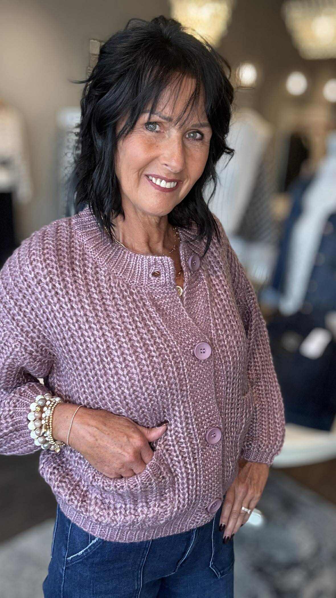Elevate your cozy wardrobe with the Button Front Cable Sweater in a soft mauve shade. Featuring classic cable knit detailing and convenient button closures, this sweater offers both timeless style and easy layering. The gentle mauve hue adds a subtle pop of color, perfect for refreshing your fall essentials while keeping you warm and comfortable wherever you go.