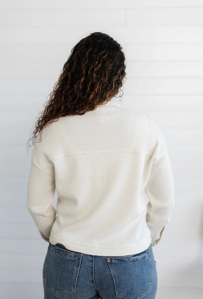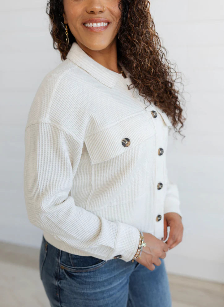 This crop knit shacket is your new go-to for layering with a twist. Cozy yet stylish, it features handy patch pockets perfect for stashing your essentials or striking a pose. Its cropped fit adds a fun, flirty vibe to any outfit, making it easy to mix and match for playful looks all season long.