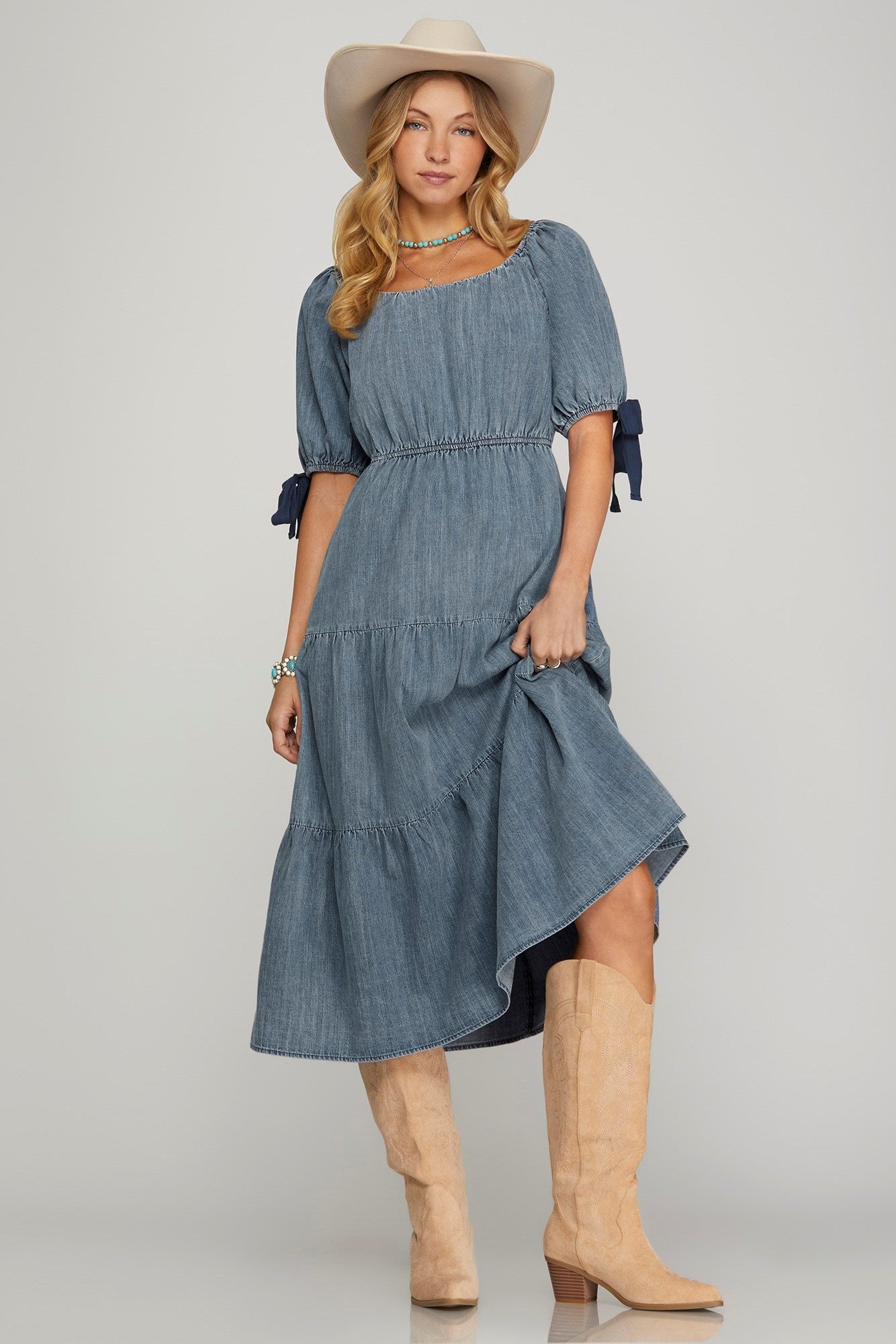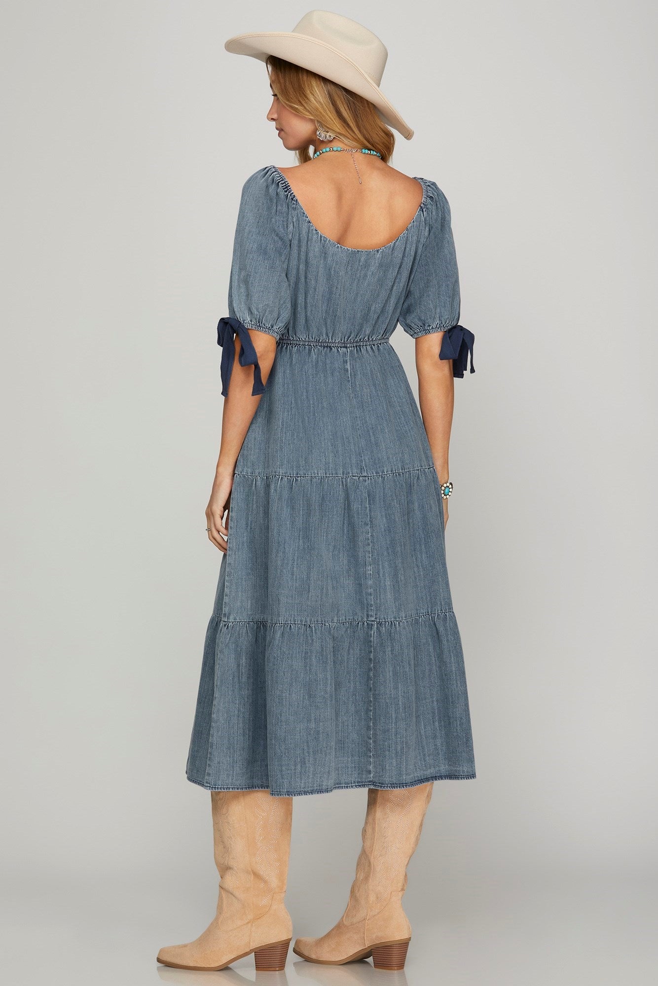 Denim Tiered Midi Dress