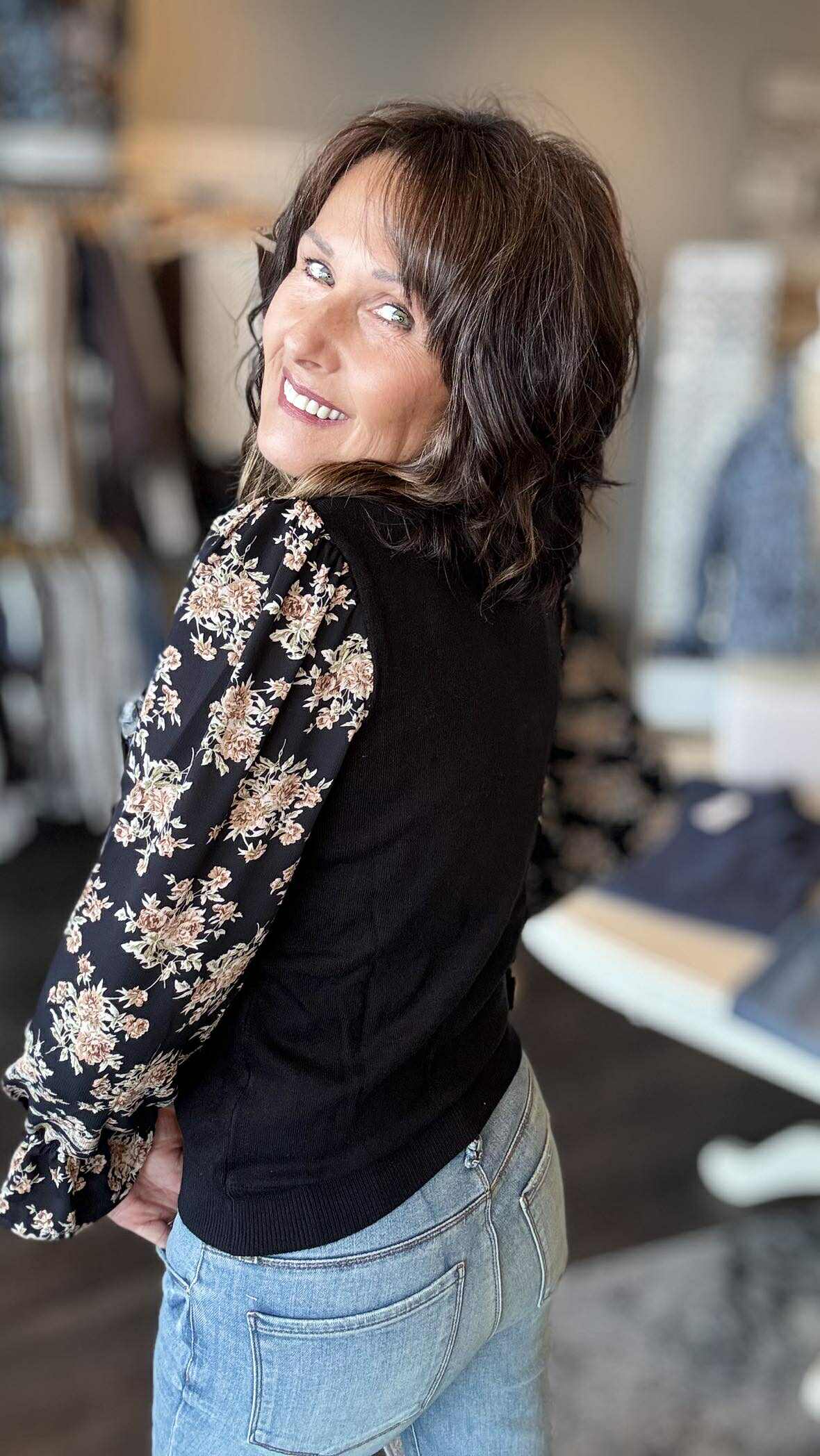Floral Detailed Long Sleeve Knit Top