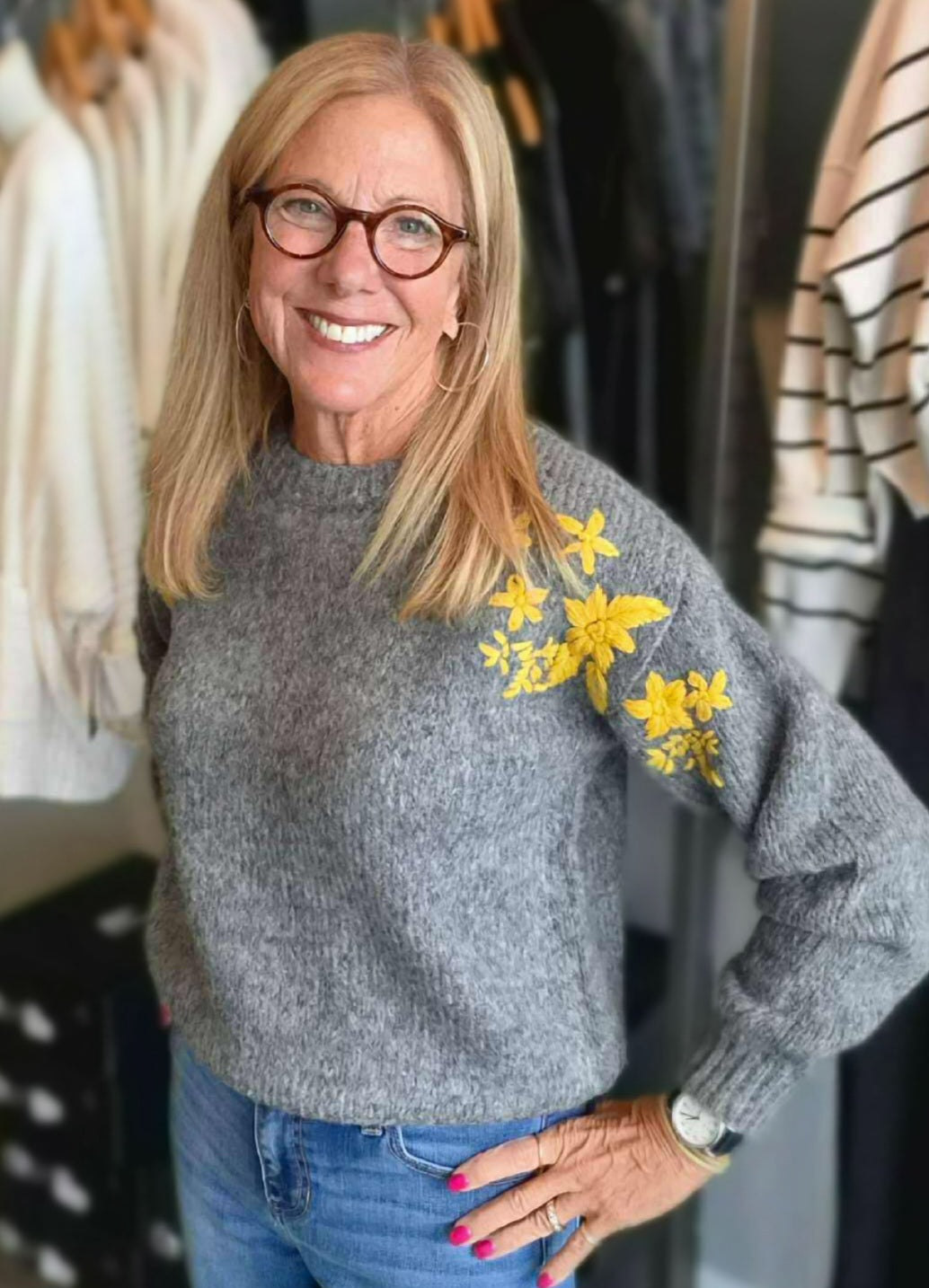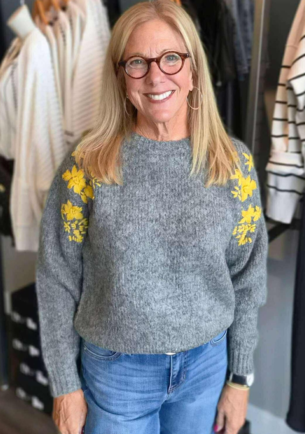 Make a bold statement with this Floral Shoulder Detail Sweater, where bright pops of yellow flowers bring vibrant energy to your look. The daring design adds a fresh, eye-catching touch, perfect for standing out while staying cozy and chic.
