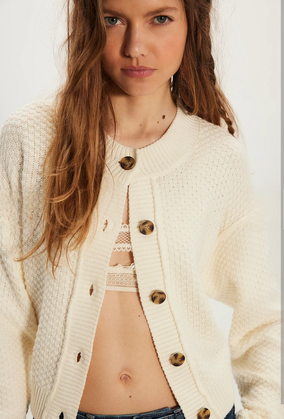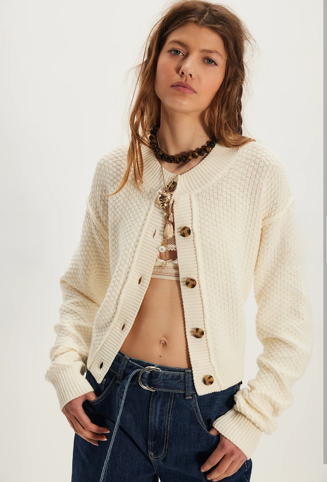Elevate your wardrobe with the Free People Lila Cardi in cream, a refined layering piece crafted for effortless elegance. Its soft, breathable fabric ensures comfort throughout the day, while the timeless cream hue adds a touch of understated sophistication. Perfect for transitioning between seasons, this cardigan complements both casual and dressier ensembles with graceful ease.