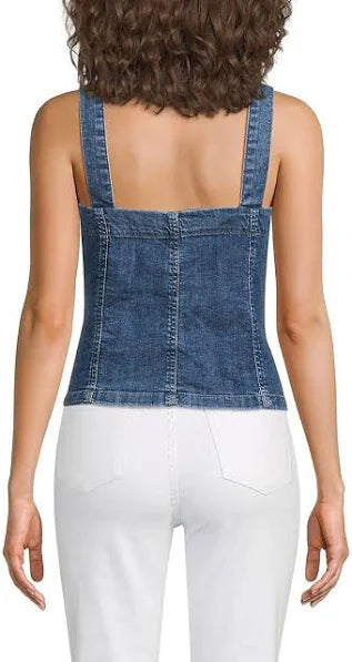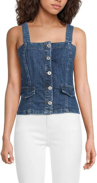 Denim just got a whole lot more fun with this cheeky sleeveless top! The button-front design lets you decide how much sass to serve—fully fastened for a classic look or playfully unbuttoned for a flirty vibe. This versatile denim darling is ready to dance through your wardrobe, making friends with skirts, shorts, and even those fancy pants you've been saving. Your summer adventures just found their new favorite sidekick!