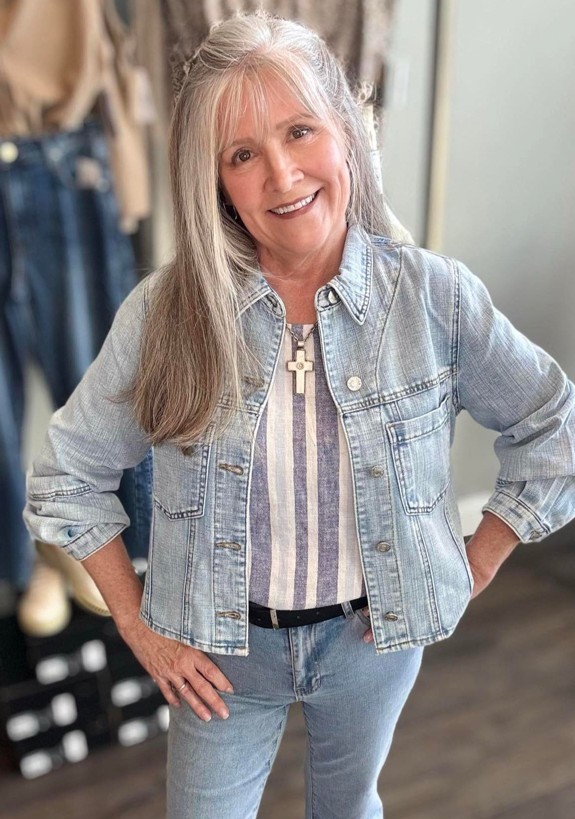 Indulge in timeless style with our Light Wash Denim Jacket. Crafted from high-quality denim, this jacket boasts a light wash for a vintage-inspired look. The two chest pockets add an extra touch of practicality, making this jacket a must-have for any fashionable wardrobe. Elevate your everyday ensemble with this versatile and luxurious piece.