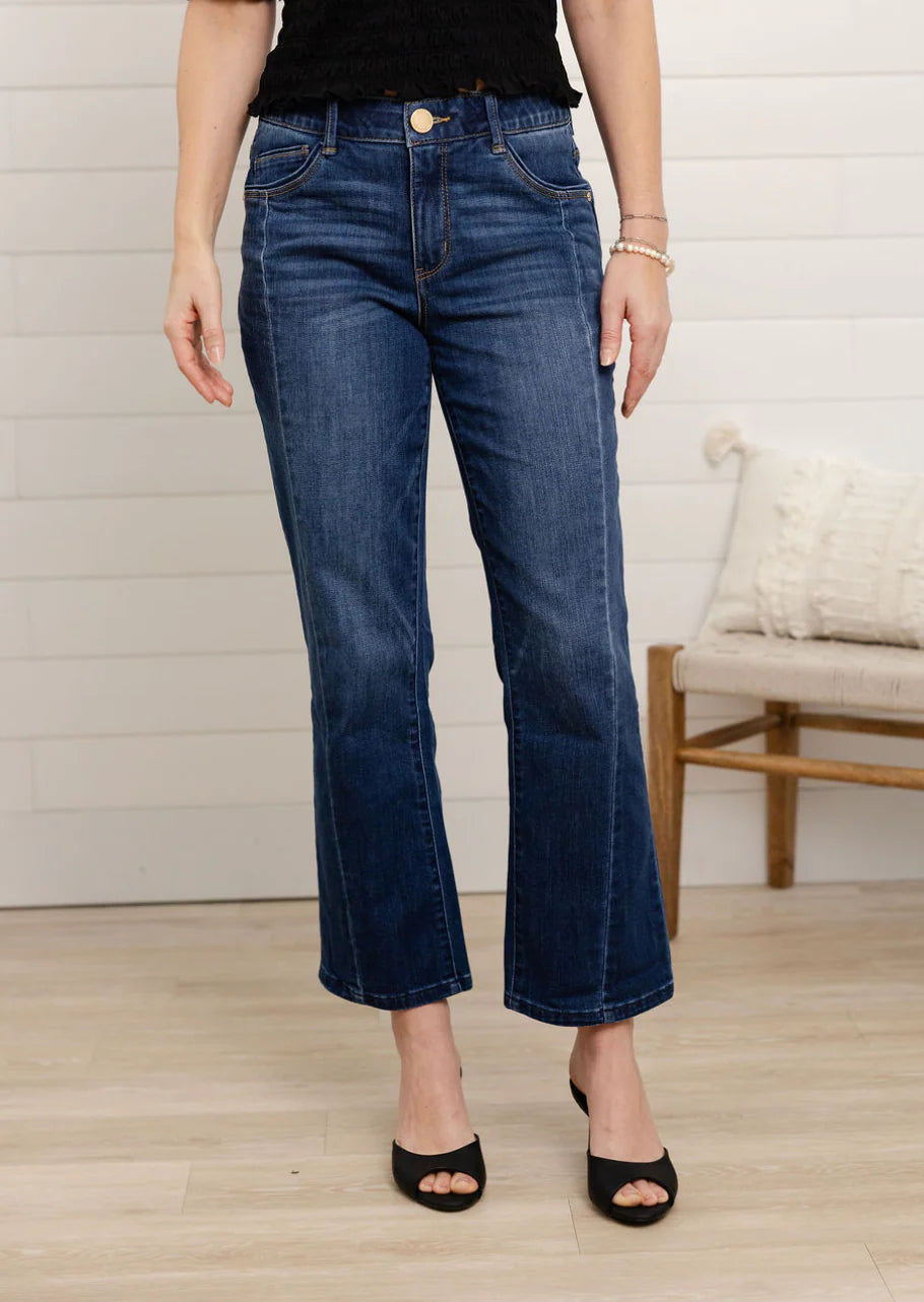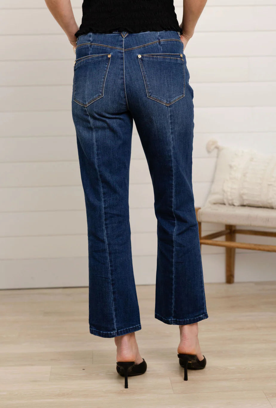The Mac and Me Barely Boot w/ Front Seams is another standout from our exclusive Mac and Me line — designed with real bodies and real comfort in mind. This pair features a subtle bootcut that balances the leg beautifully, while front seams and a sleek side panel create a lengthening, leg-enhancing effect. Darts at the back add shape and polish, giving you that lifted, held-in feel everyone loves. Crafted from buttery soft denim, these jeans are as comfortable as they are confidence-boosting.