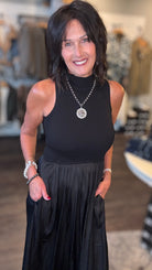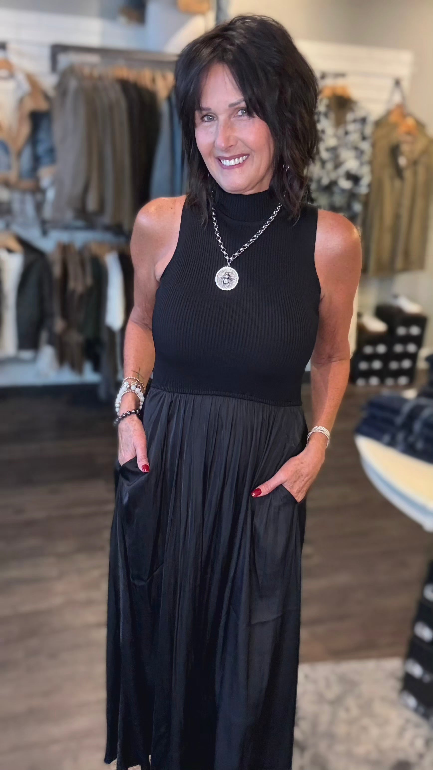 Stand out confidently in the Maci Mock Neck Dress, featuring a sleek ribbed top that hugs your silhouette and a flowing poly skirt that moves with bold grace. This daring design merges comfort with edgy sophistication, making it perfect for those who command attention while staying effortlessly chic.