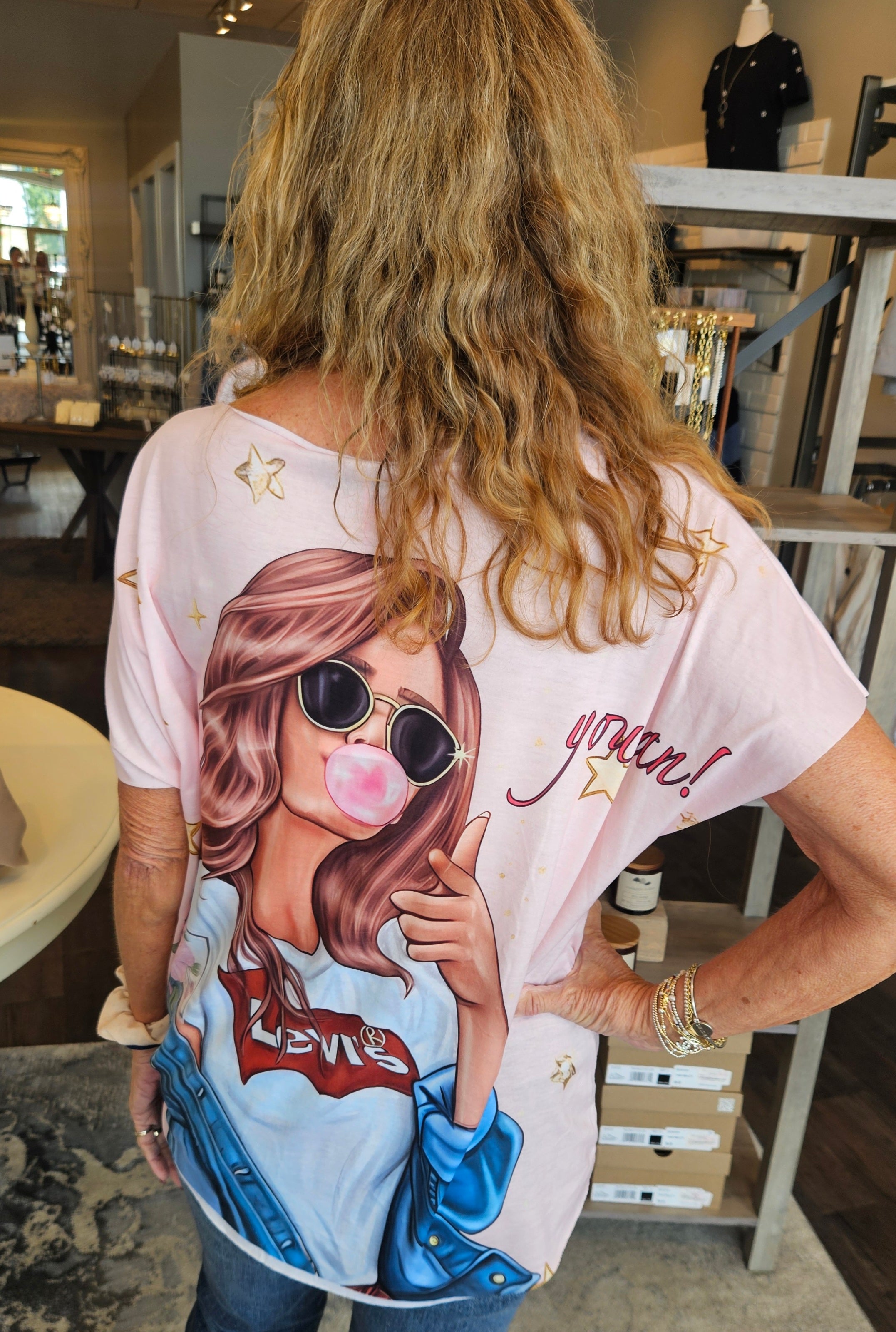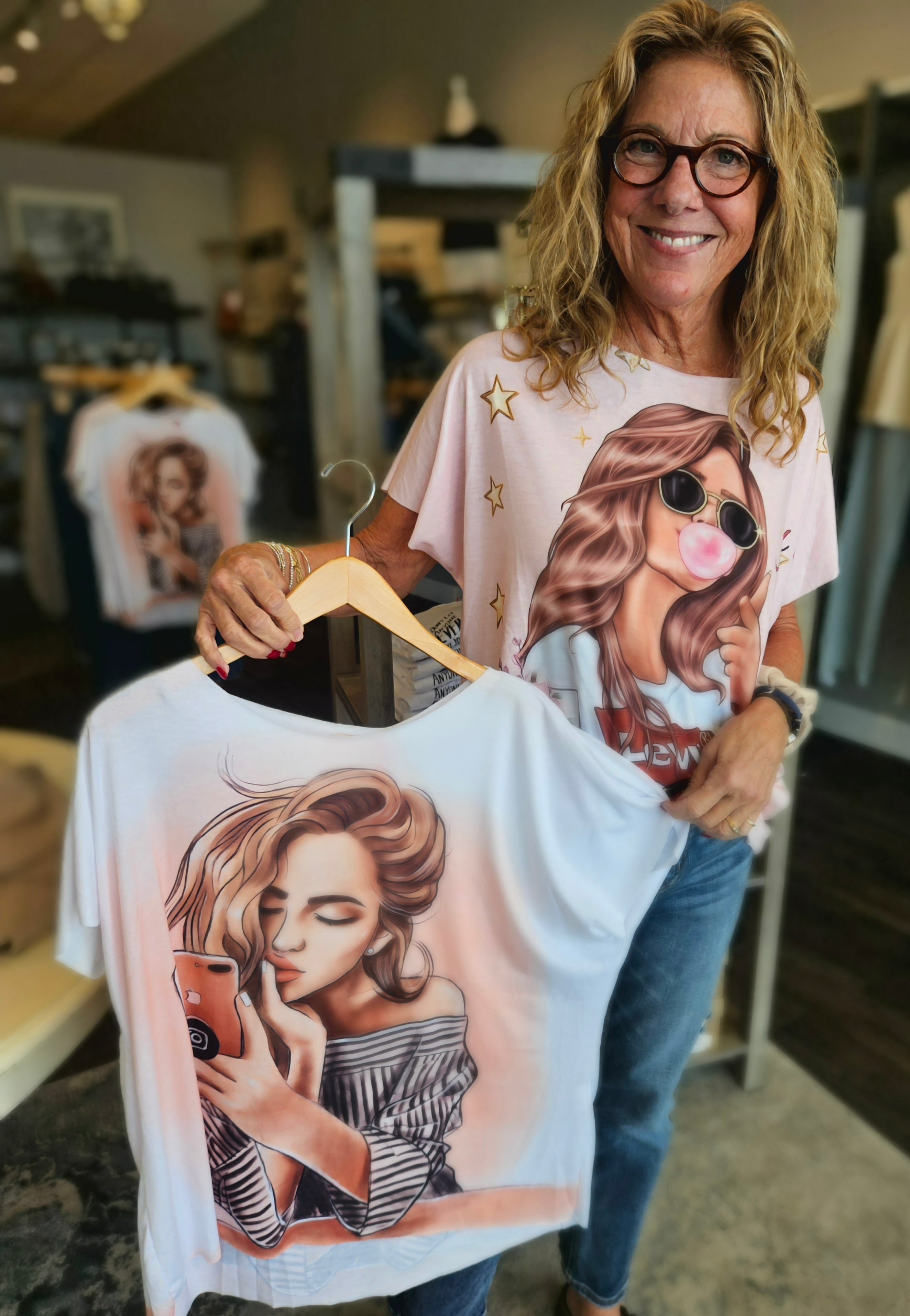 Made in Italy graphic tops featuring bold designer girl artwork bring fearless style to your wardrobe. Crafted with Italian quality, these tops deliver striking visuals that empower you to express your unique attitude with confidence and edge.