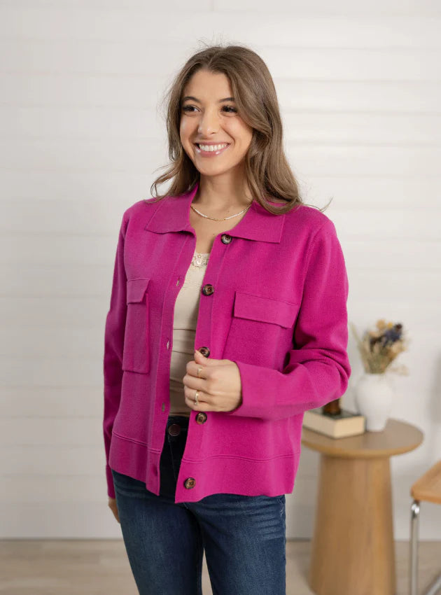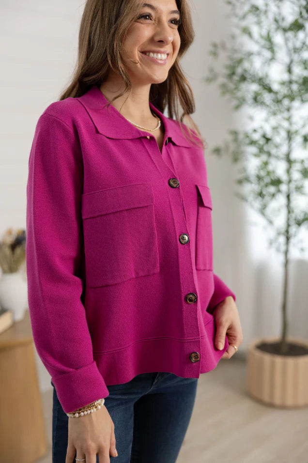 Elevate your wardrobe with the MB Double Knit Collared Cardigan in Pink Flambé. Crafted from a refined double knit fabric, this cardigan offers a polished silhouette and lasting comfort. Its structured collar adds a touch of sophistication, making it ideal for both professional settings and elegant casual occasions. The subtle pink hue brings a graceful warmth to your ensemble, enhancing your style with understated elegance.