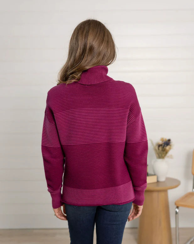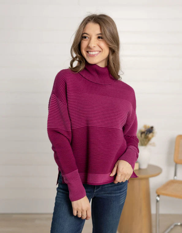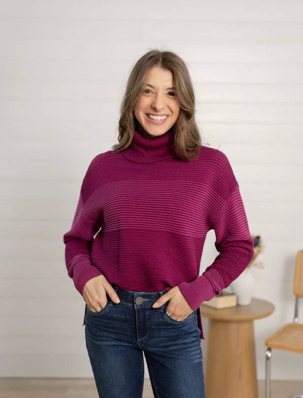 MB Hi-Lo Contrast Stripe Turtleneck Sweater