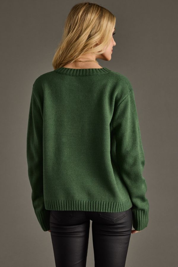 Get cozy and festive with the Merry Sweater in a rich hunter green shade. Perfect for spreading holiday cheer, this sweater combines comfort and style, making it your go-to for chilly winter days. Embrace the season with a playful pop of color that brightens up any gathering.