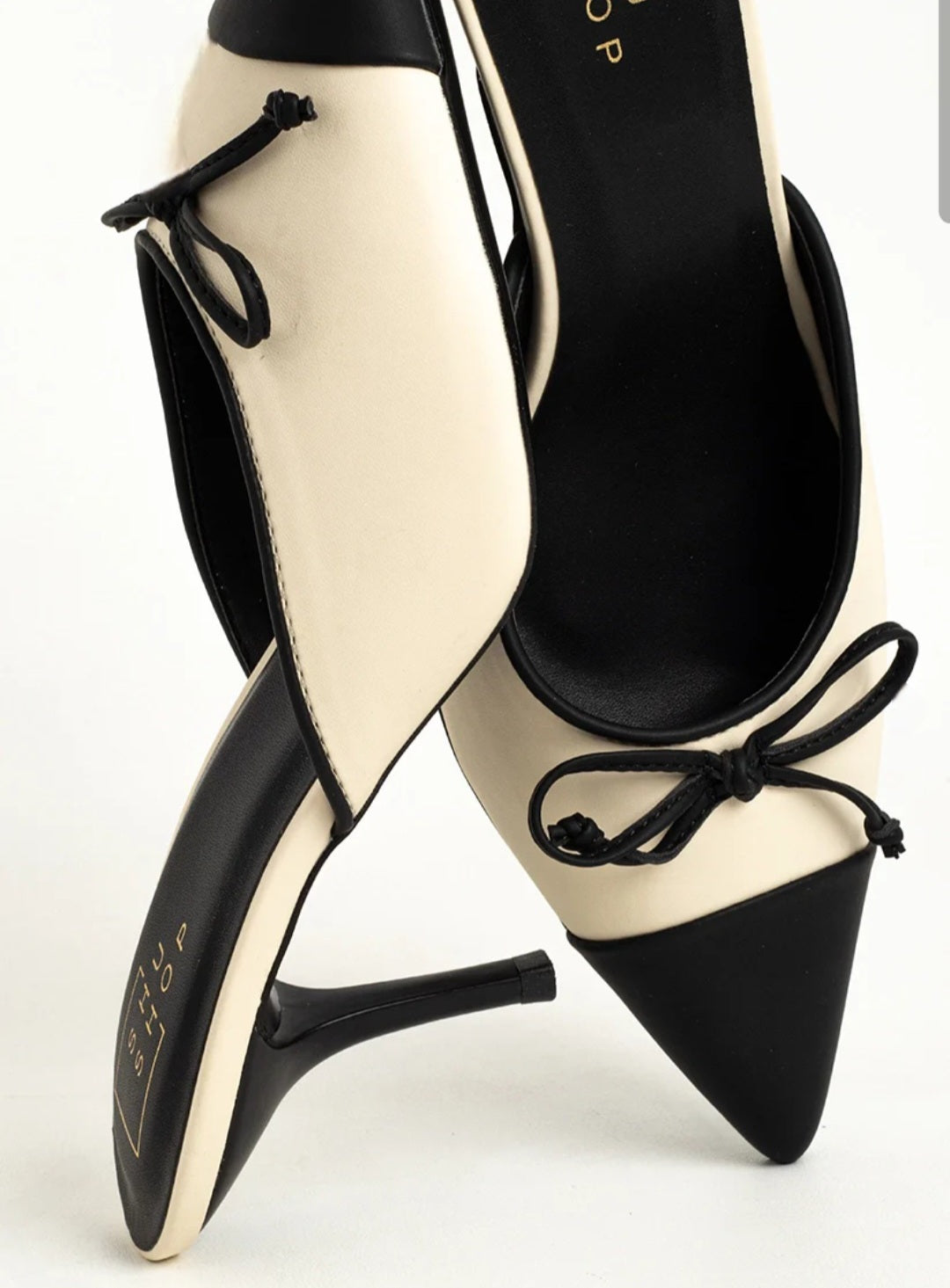 Step boldly in the Naomi Heel, now available in bone and black with a sleek, smaller heel that balances chic style with confident comfort. This daring design is perfect for those who want to make a statement while keeping their stride effortless. Elevate your look with a touch of bold sophistication that moves with you.