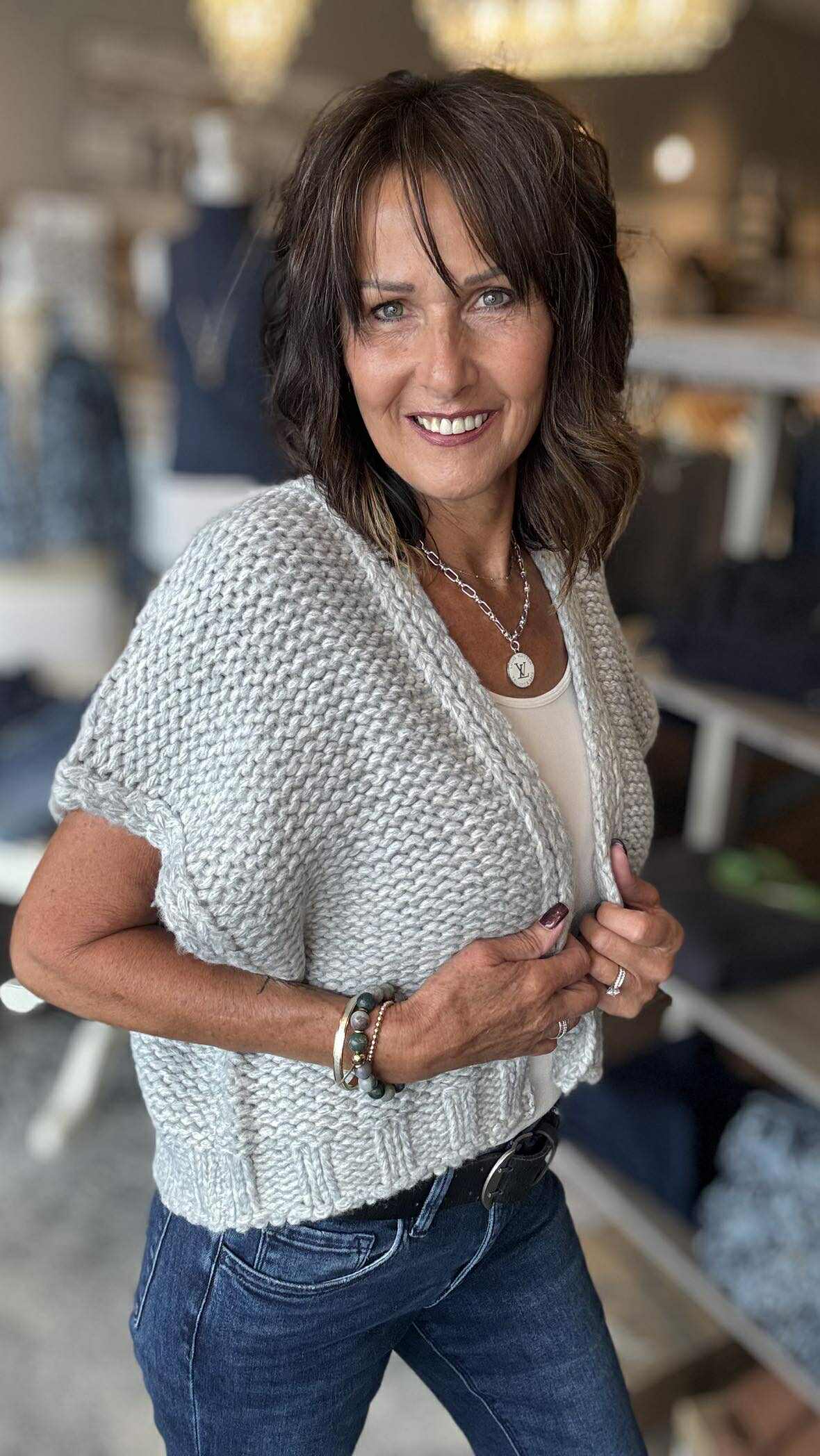 The Open Cardigan Gilet offers a versatile layering option with its chunky knit design, providing both warmth and texture. Its open front allows for easy styling over various outfits, making it an ideal piece for transitional weather. Crafted for comfort and durability, this gilet adds a sophisticated yet cozy element to any wardrobe.