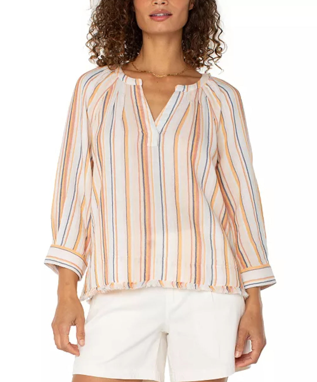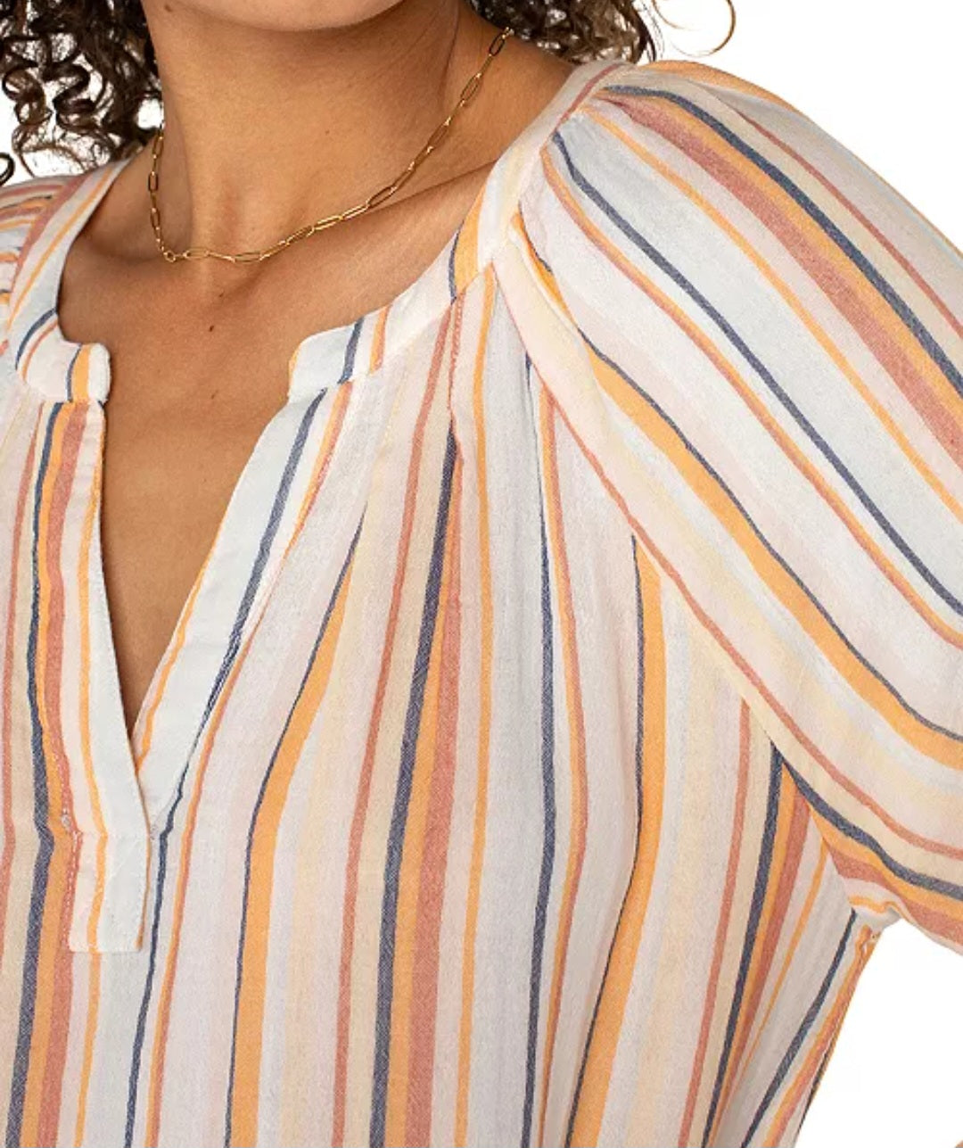 Add some colorful fun to your wardrobe with our Pleated Raglan Top! The multi stripe design adds a playful touch to this already quirky shirt. Perfect for those who don't take themselves too seriously. (But seriously, this top is a must-have!)
