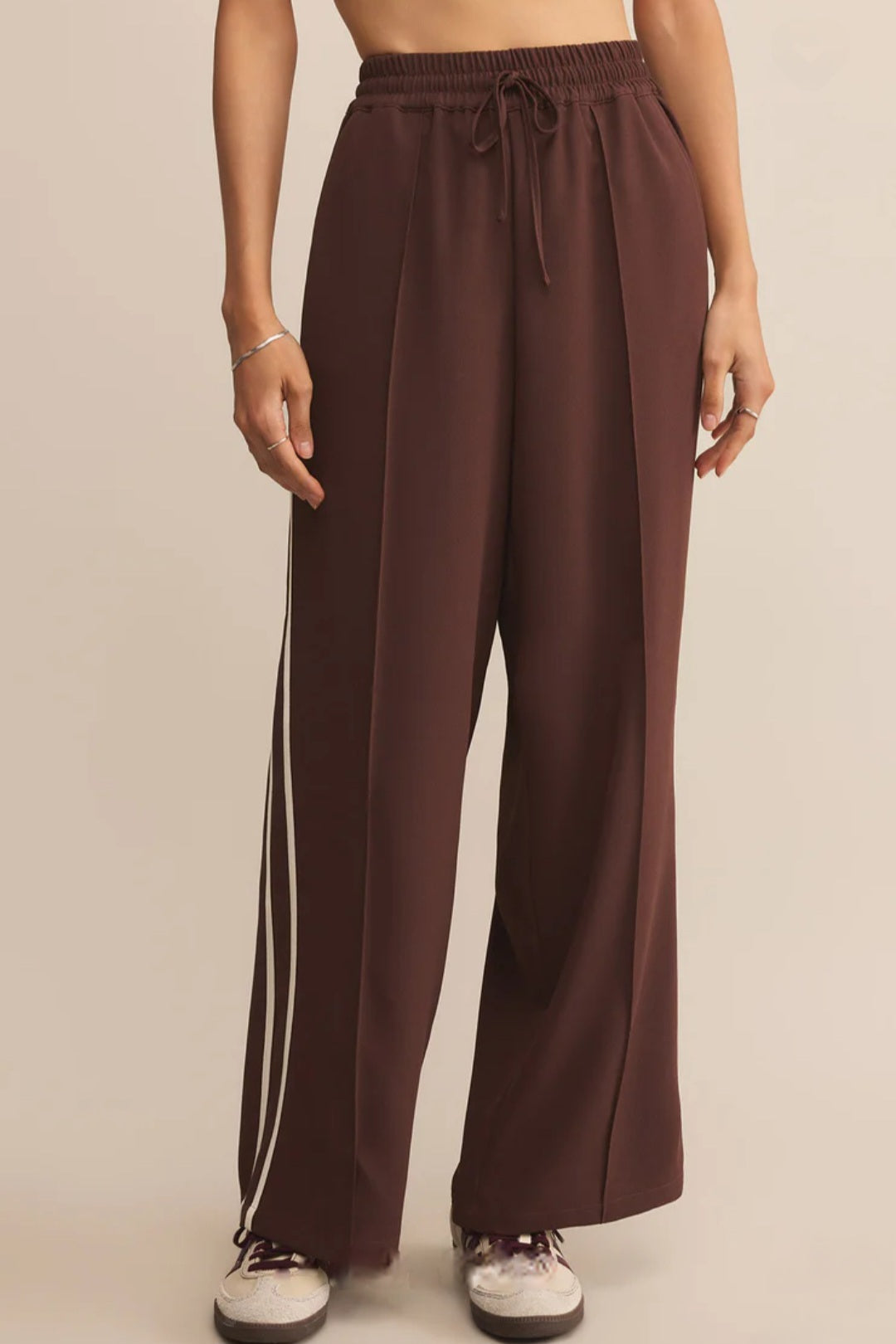 Step up your style game with the Saunder Track Pant in warm brown, playfully accented by a creamy stripe. These pants blend cozy comfort with a sporty vibe, perfect for lounging or making a casual statement around town. Soft, stretchy, and effortlessly cool, they're your new go-to for days when comfort meets fun.