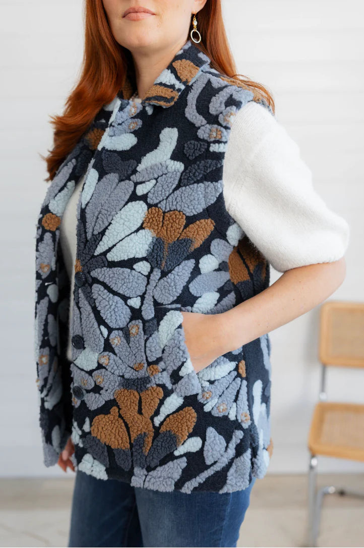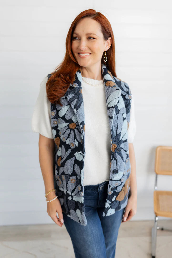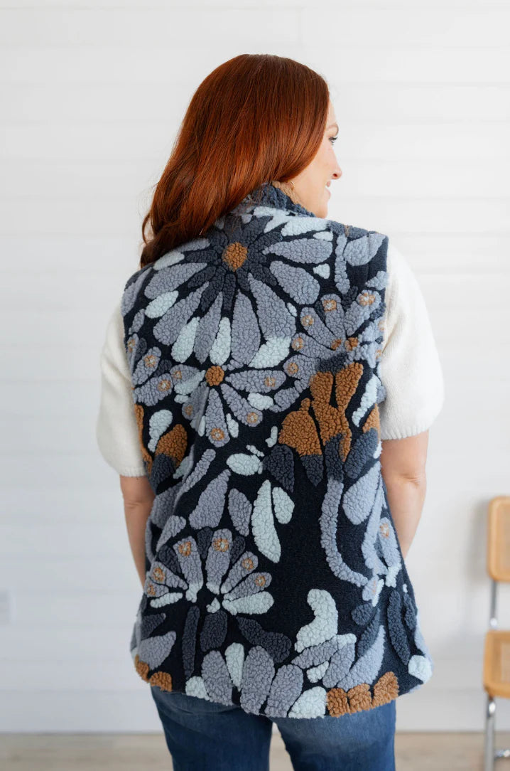 Elevate your layering with the Sherpa Flocked Floral Fleece Vest, a refined blend of warmth and elegance. Crafted from plush fleece with a delicate floral flocked pattern, this vest offers both comfort and a subtle statement. Its soft sherpa lining ensures cozy insulation, making it an ideal choice for cooler days while maintaining a polished, sophisticated look. Perfect for adding texture and style to any ensemble.
