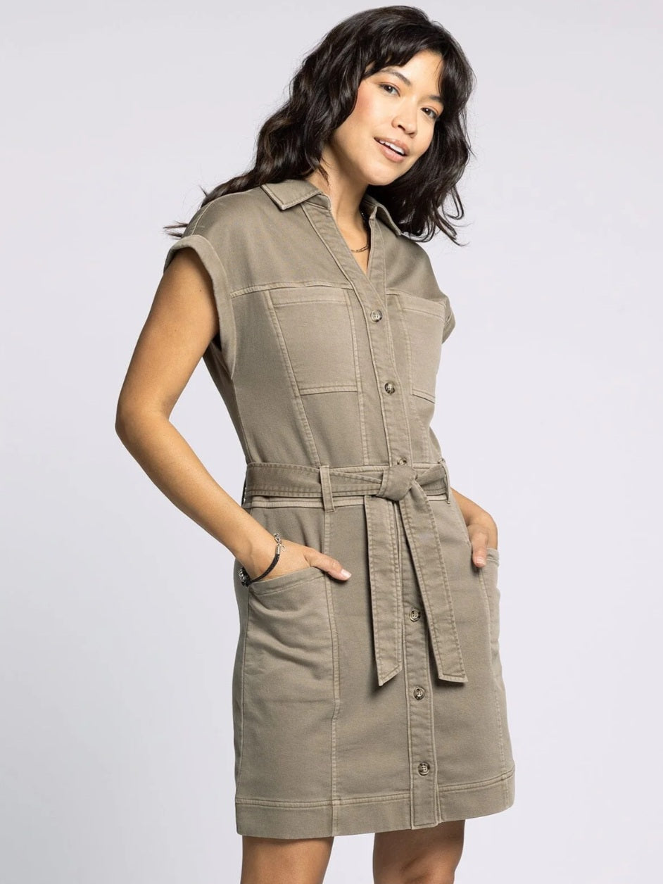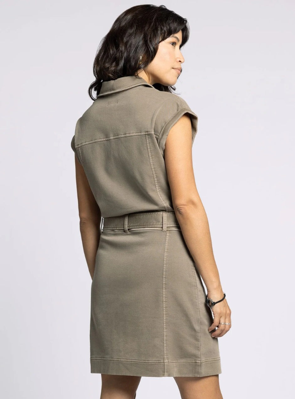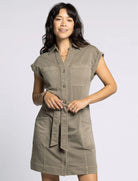 The Siena Olive Dress combines effortless style with flattering details. Its sleeveless design and knee-length cut keep you cool and comfortable, while the button-front adds a classic touch. The included belt cinches the waist for a tailored silhouette, making it perfect for both casual outings and dressier occasions. Embrace versatile elegance with this timeless olive dress.