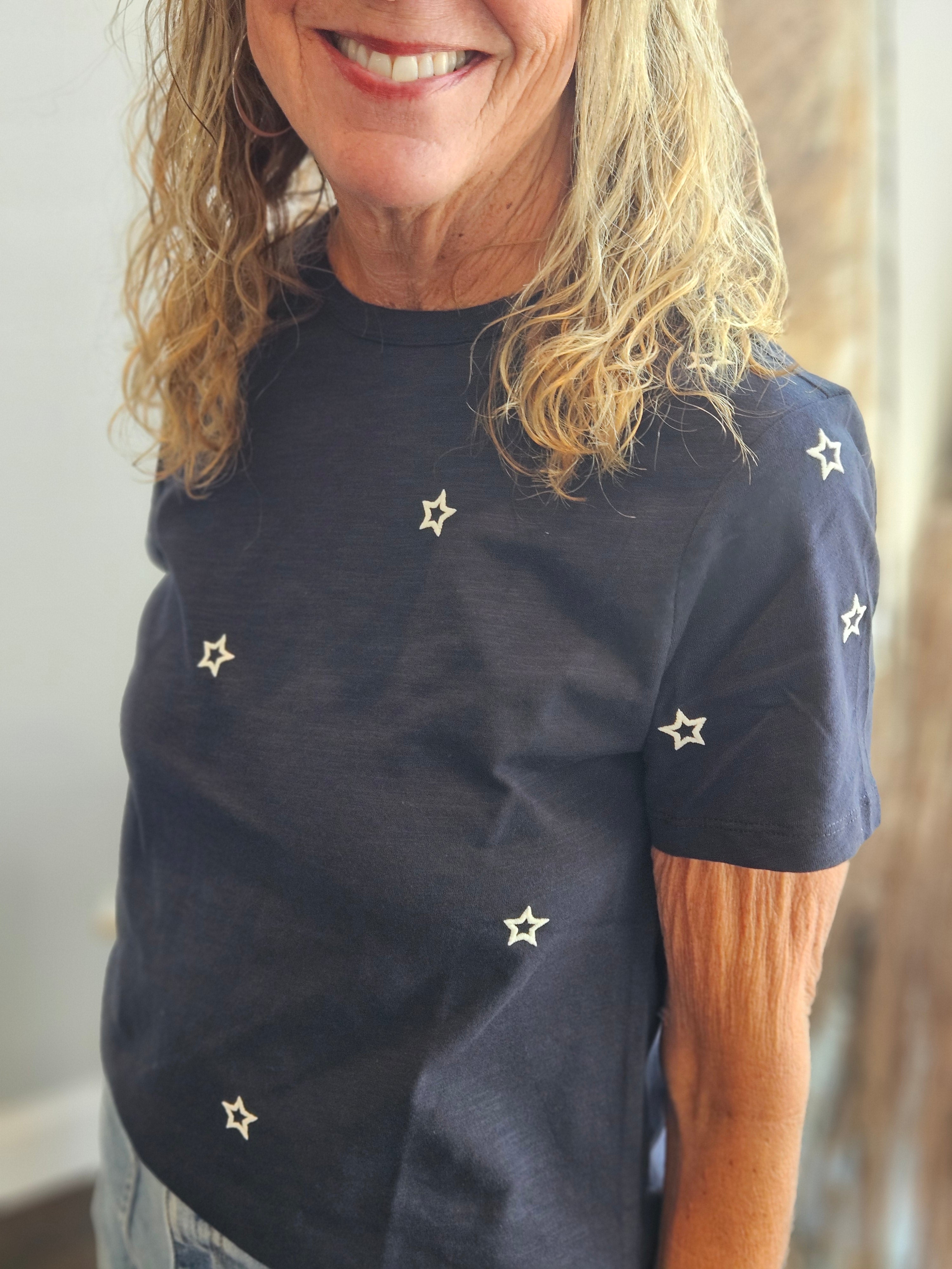 Show your love for the stars and stripes with this playful Star Embroidered Cotton Tee. Crafted from soft, breathable cotton, it keeps you comfy while celebrating your patriotic spirit. The charming star embroidery adds a fun, festive touch perfect for any casual outing or holiday gathering. Wear your pride with a wink and a smile!