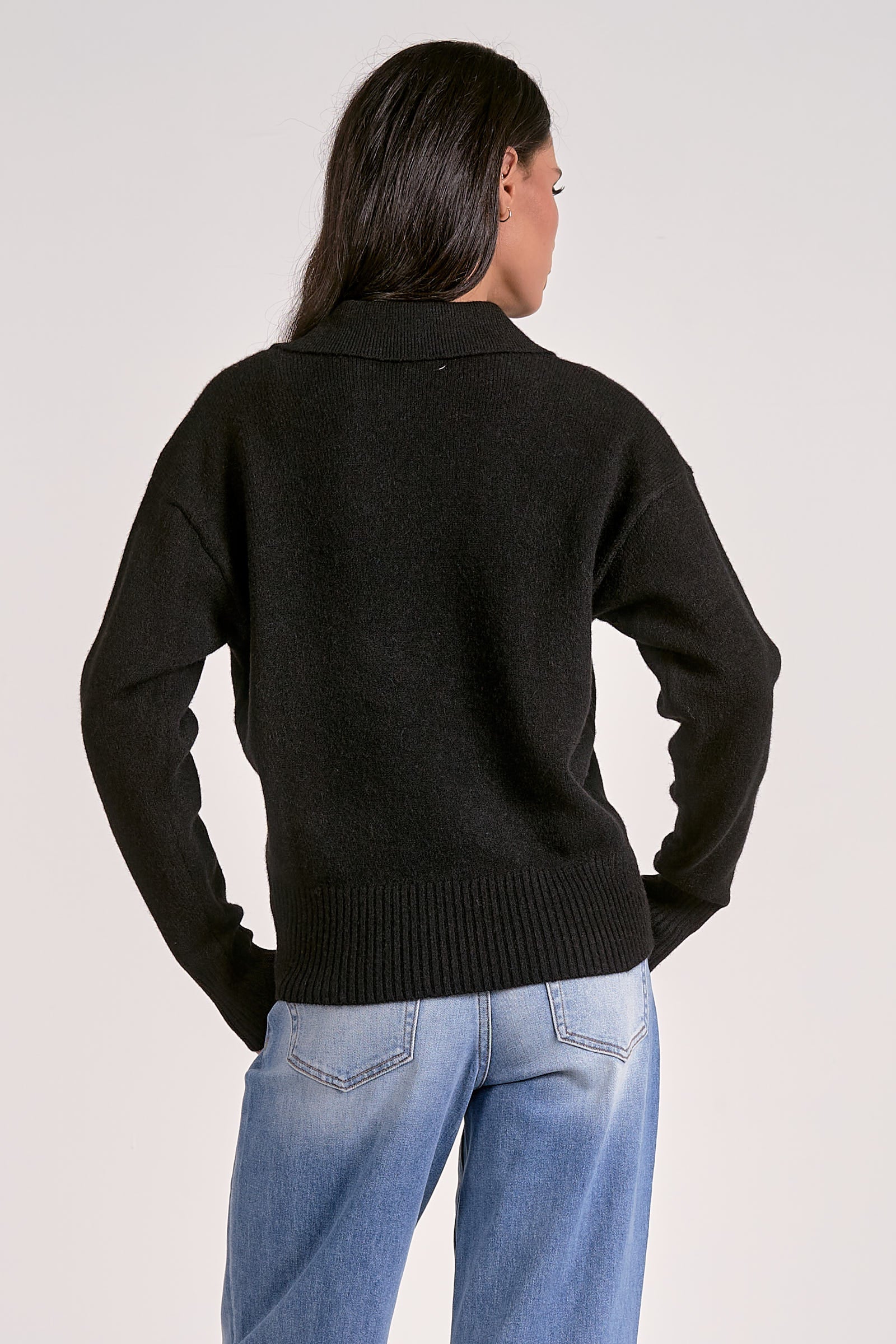 Elevate your wardrobe with this black sweater collar polo, combining the comfort of a sweater with the classic style of a polo. Its versatile design makes it perfect for both casual outings and smart-casual occasions, offering a polished look without sacrificing coziness. Crafted to keep you comfortable and stylish, this piece is a must-have for effortless sophistication.