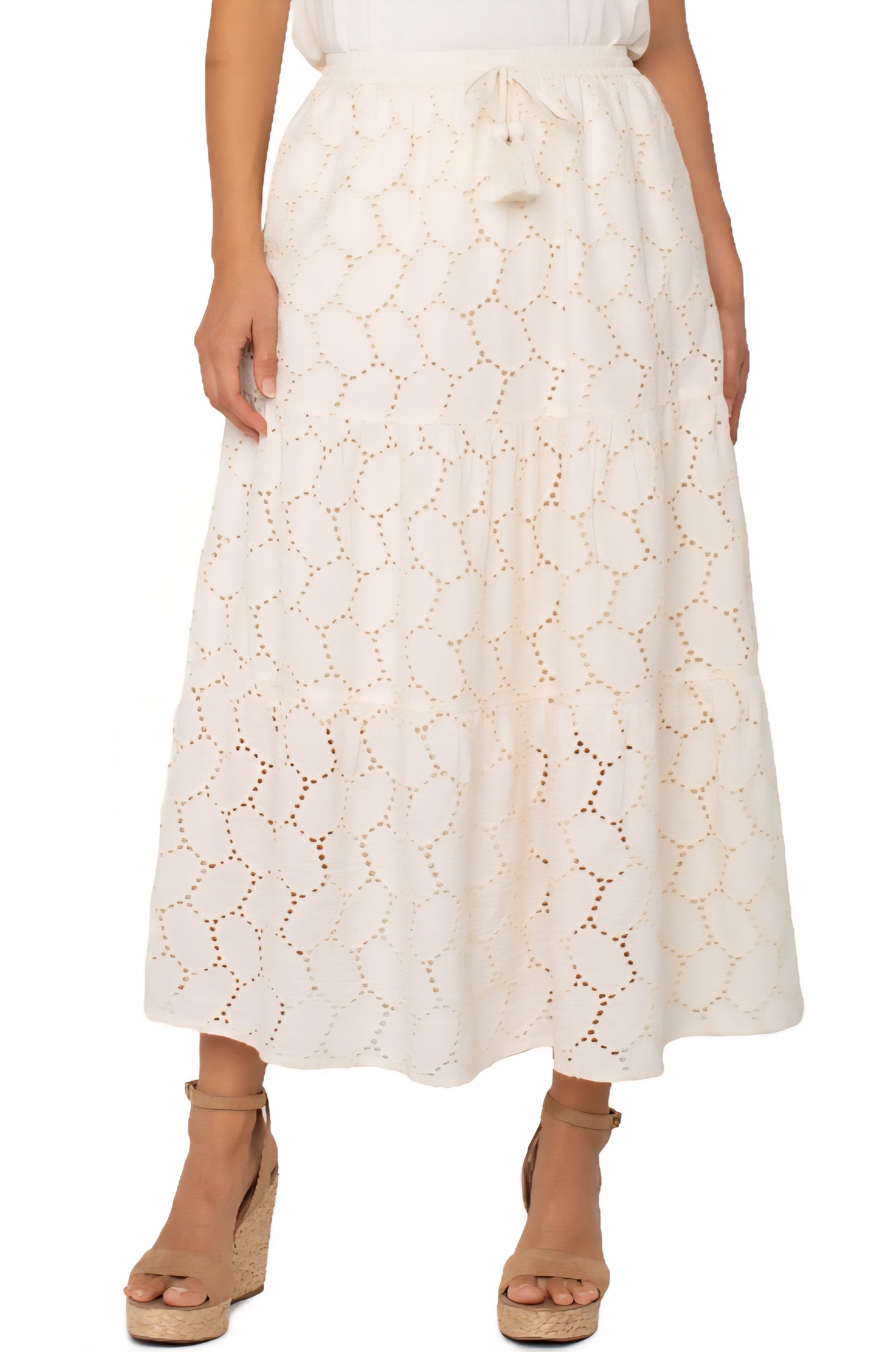 Embrace the whimsical flow of our Tiered Woven Maxi Skirt. Perfect for twirling and dancing, this skirt adds a touch of fun to any outfit. Show off your playful side with its tiered design and let your personality shine through. A must-have for any quirky fashionista.